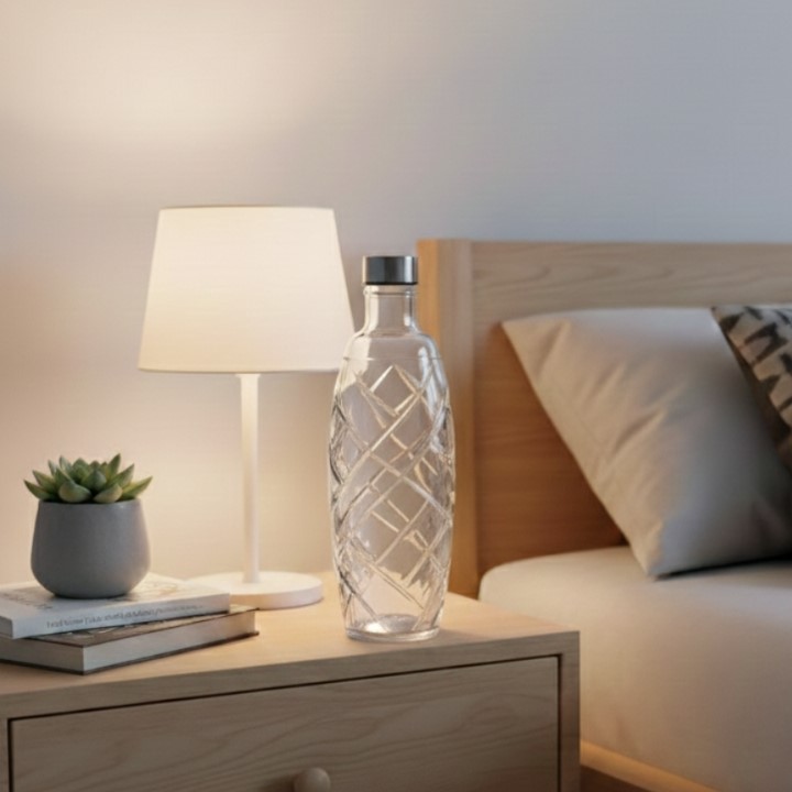 Glass Water Bottle White with Embossed Pattern and Silver Lid - abdo-210-44 A