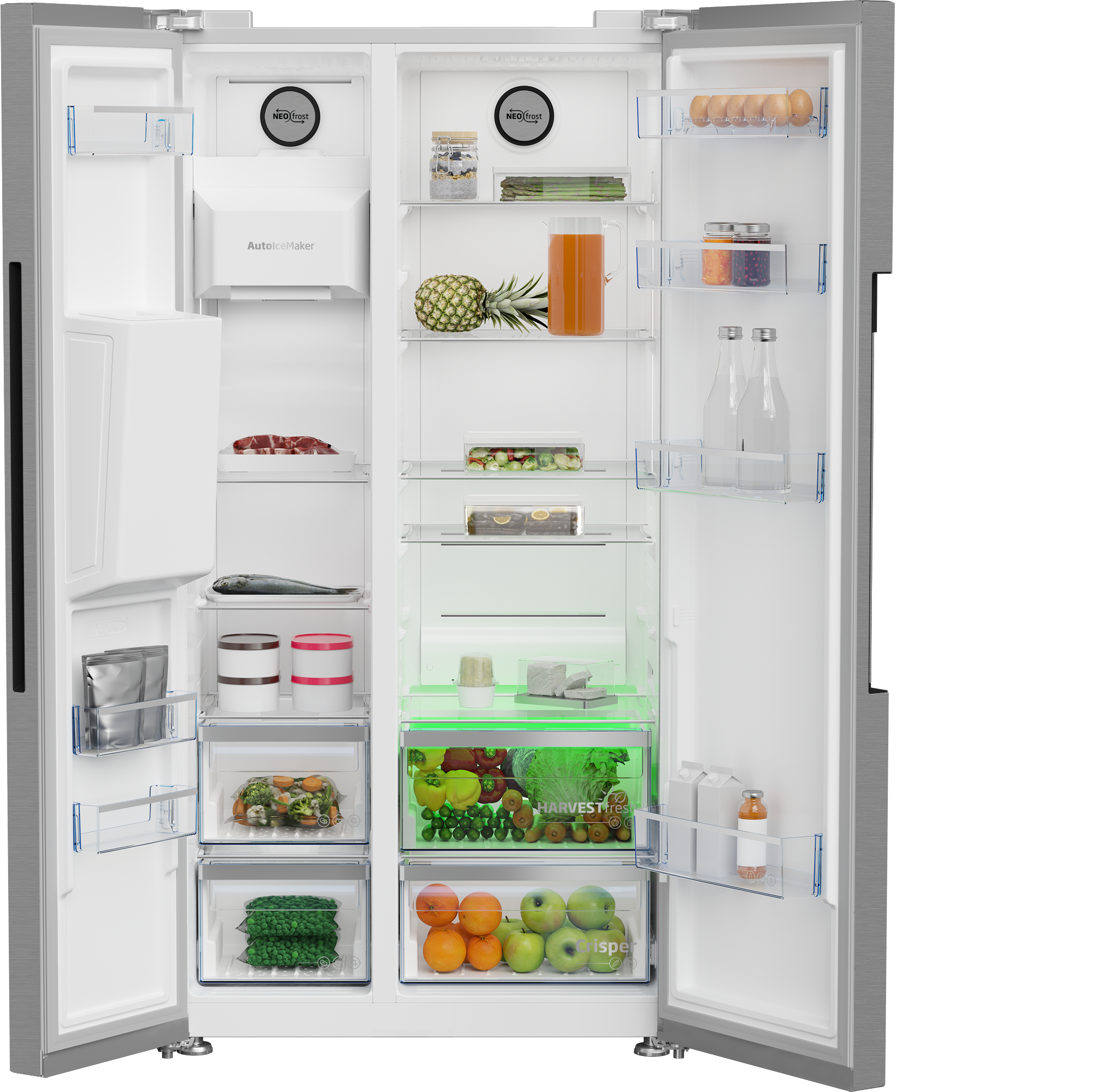 BEKO REFRIGERATOR SIDE BY SIDE 525 LITER NOFROST WITH WATER DISPENSER INOX - GN166130XB