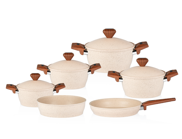 Granite Gigilli Set 10 Pieces, consisting of 4 Pots (28-24-22-20), a 26 cm Frying Pan, and a 28 cm Baking Tray in Beige
