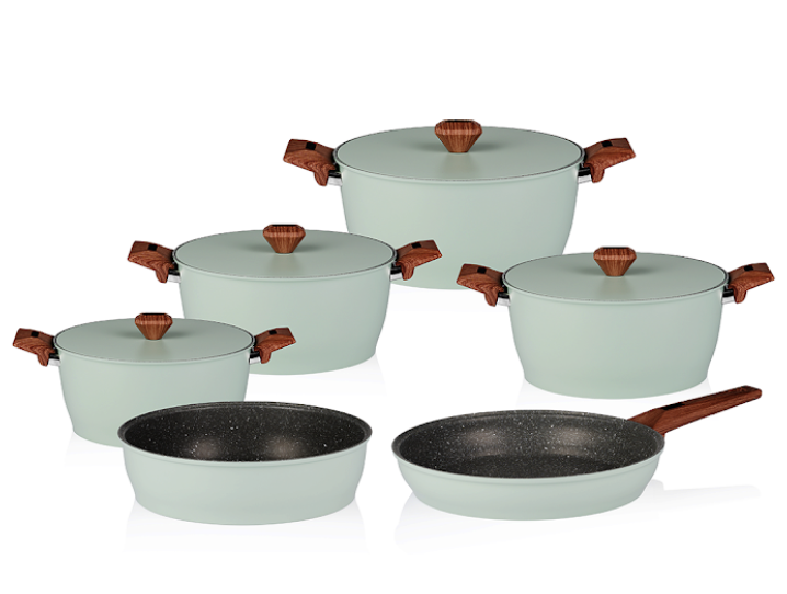 Granite Gigilli Cookware Set – 10 Pieces – 4 Pots (28-24-22-20 cm) + Frying Pan 26 cm + Oven Tray 28 cm – Mint