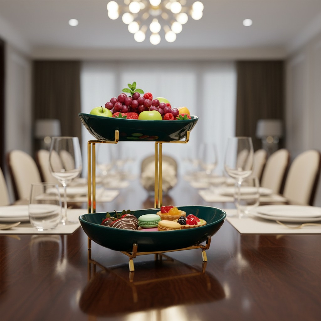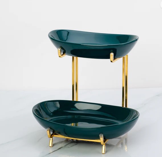 Green JJD562-1 Two-tier Tiger Tray with Gold-plated Metal Holder