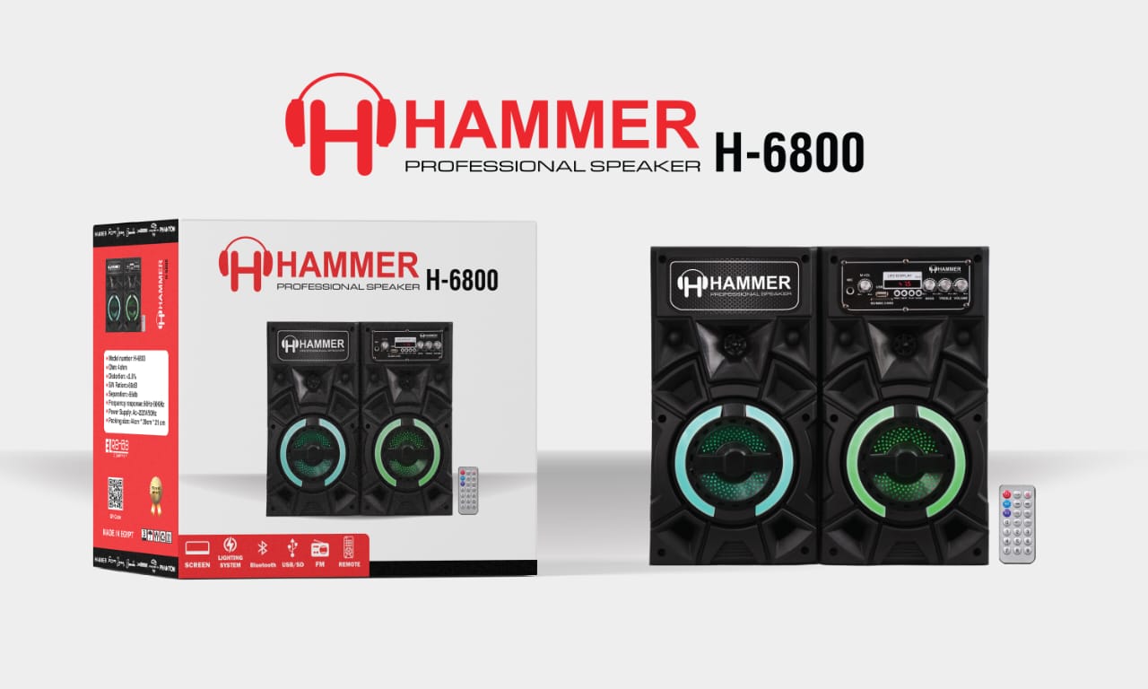 HAMMER Subwoofer Speaker Set 2 Pieces, 6-Inch, 21×18×38 cm - Black Dark Red H-6800