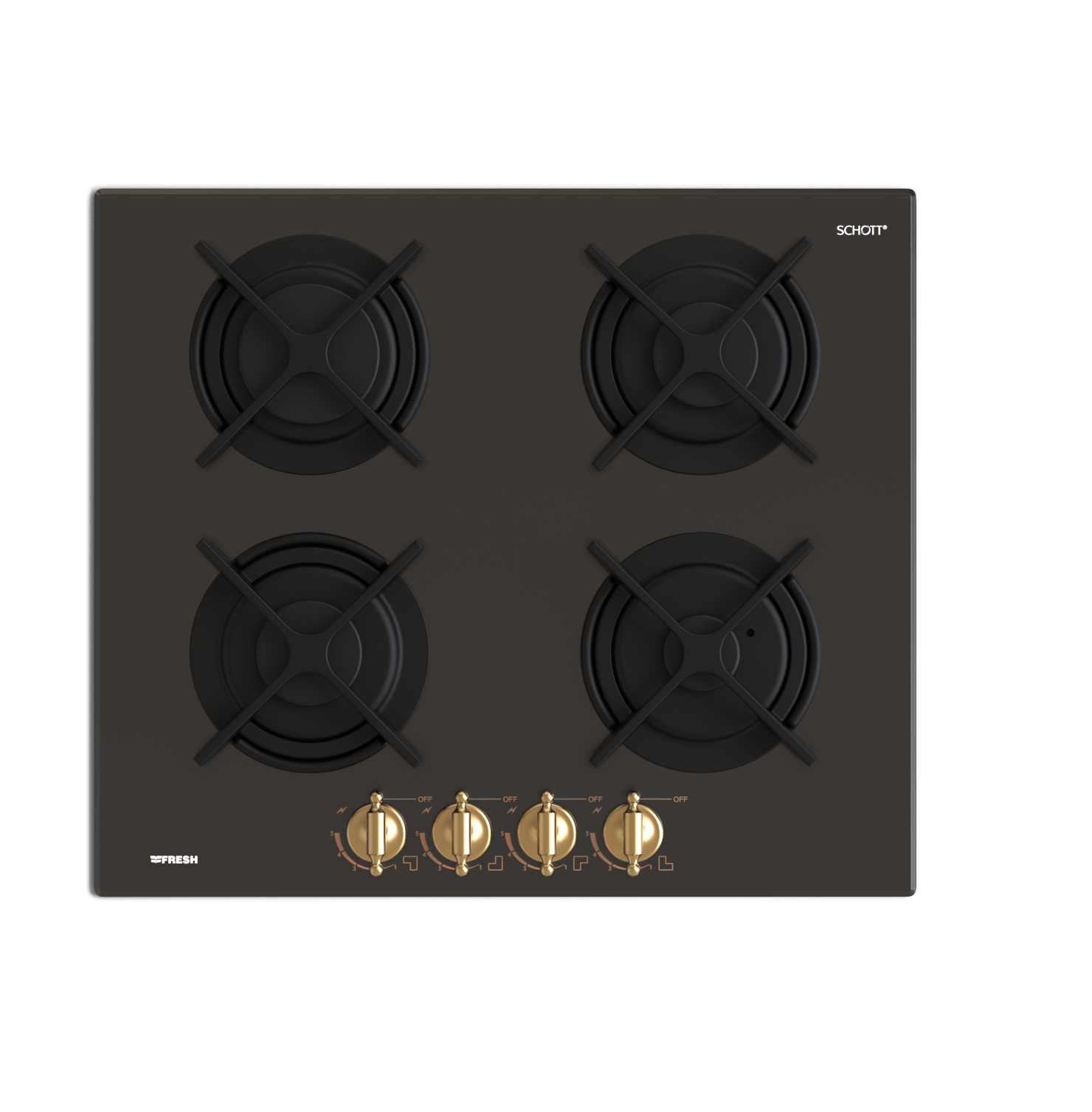 FRESH Hob Built-in Gas Rustic 60 cm 4 Burners Glass Full Safety Cast Iron Supports , Black - HFR60CMGC1/RU