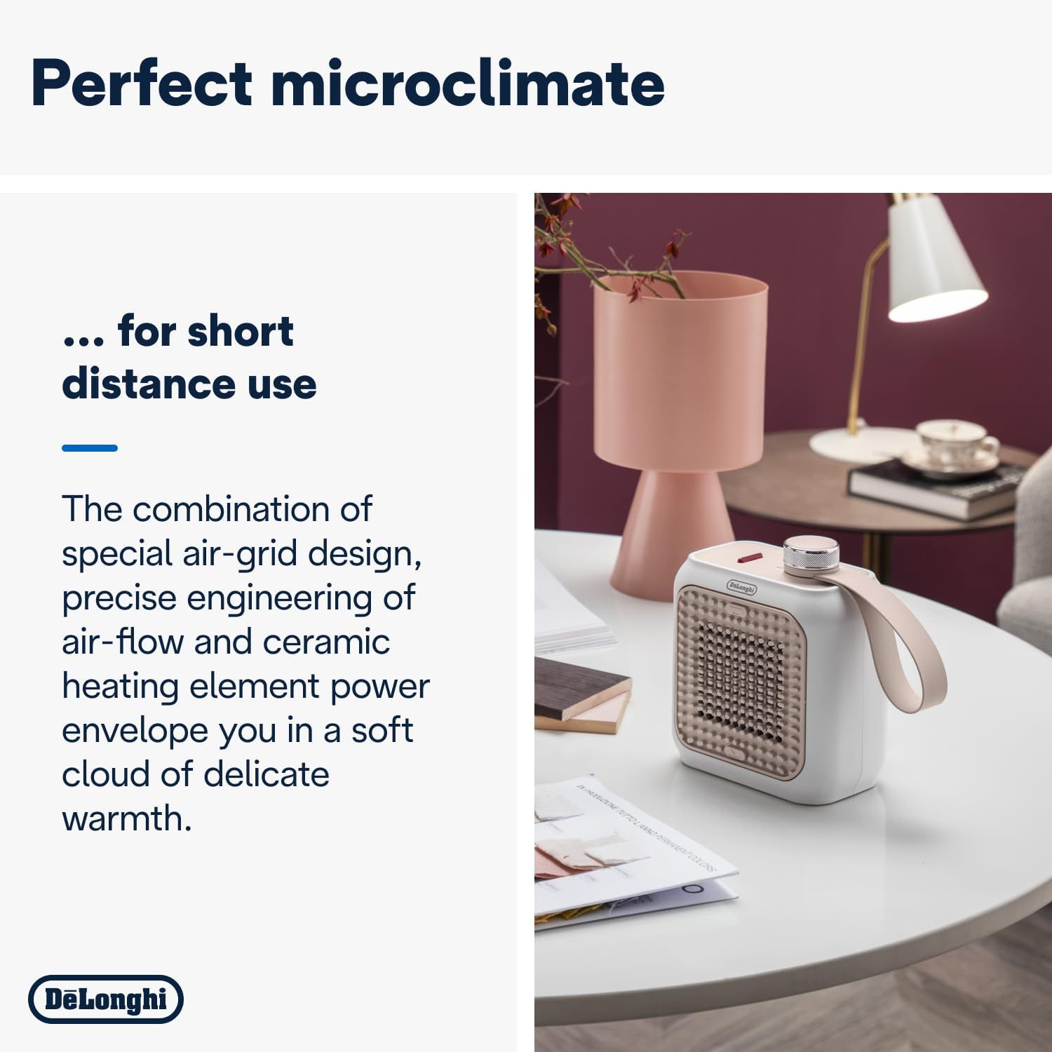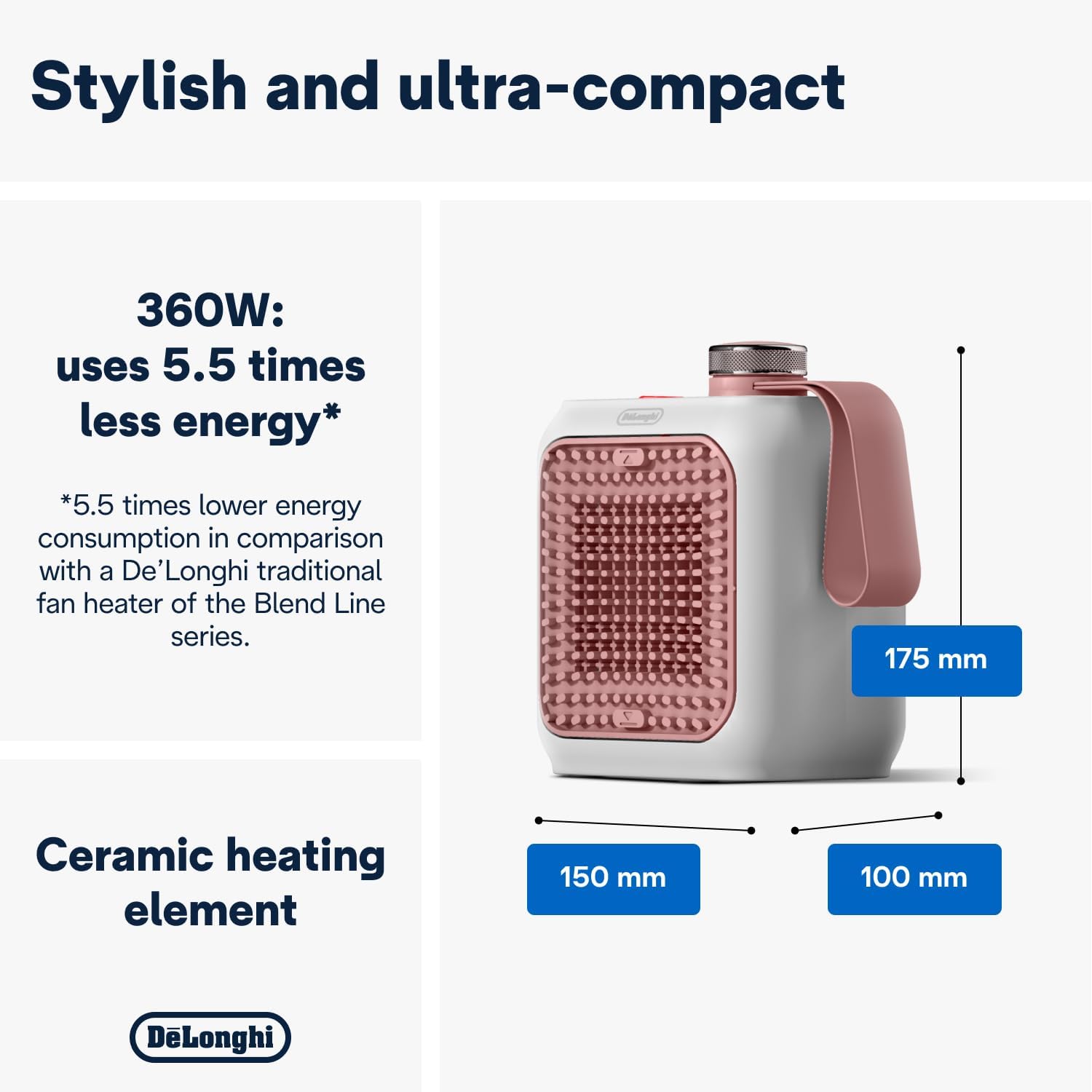 Delonghi Capsule Desk Electric Fan Heater, 360 Watts, Pink and White - HFX10B03-PK