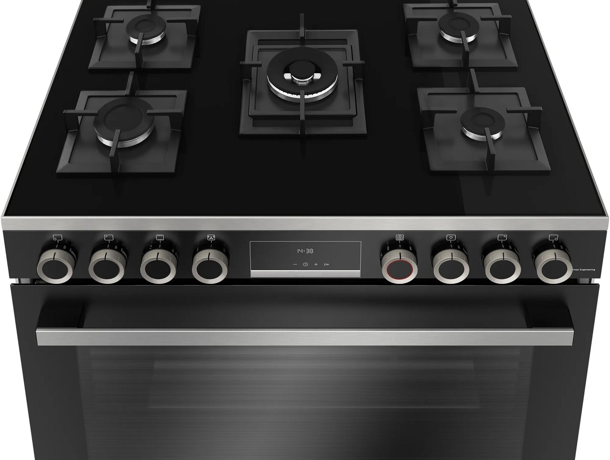 Bosch Cooker, 5 Burners, Stainless Steel, 90 × 60 cm - Black Silver - HJY5G7V69S