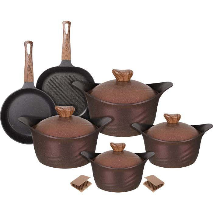 1003985: Granite pot 10 pieces, Korean model, 32 cm pot + Grill + Frying pan KAZAN / Purple