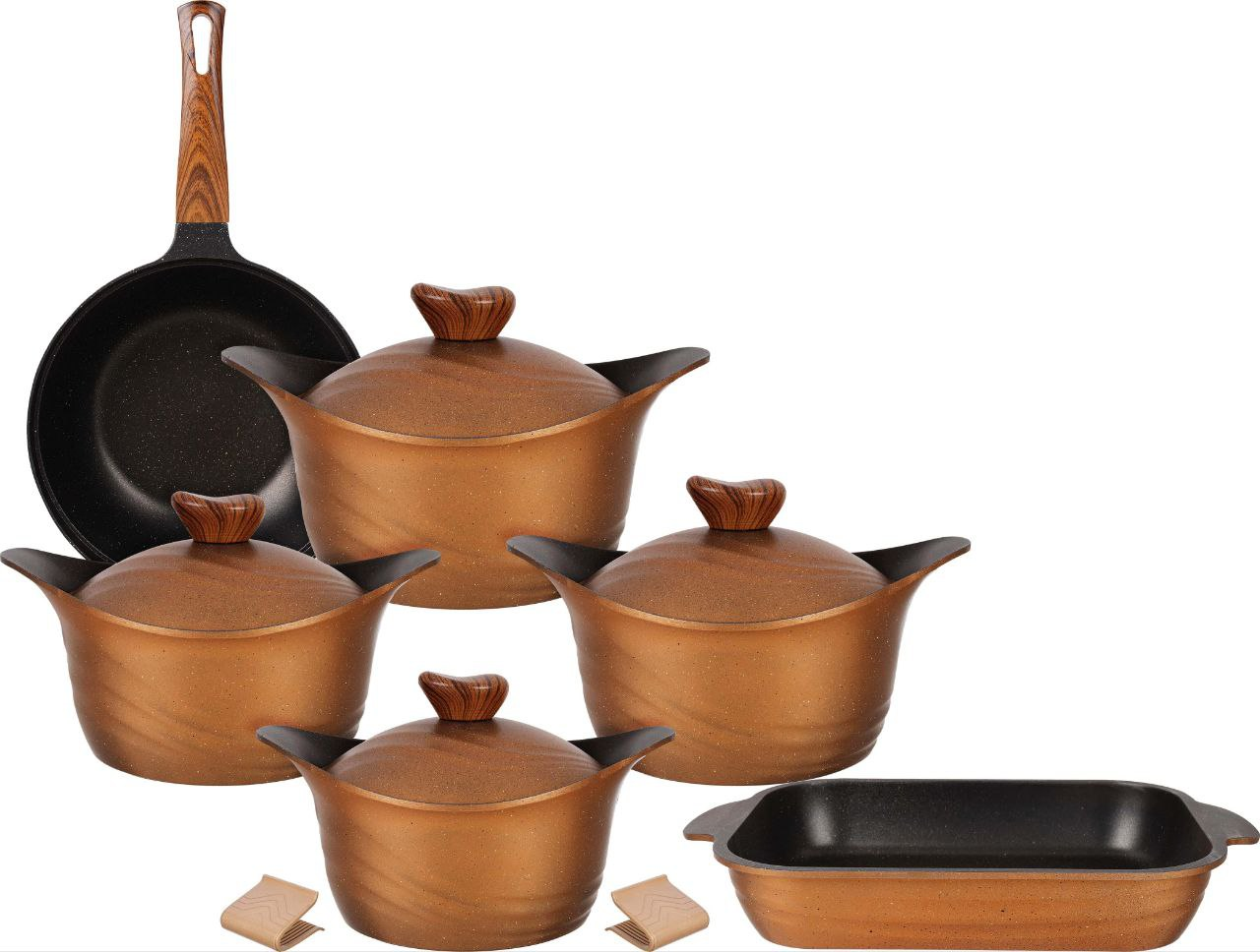 1003669: Granite pot 10 pieces, Korean model, 32 cm pot + Tajin + Wok KAZAN / Go Gold