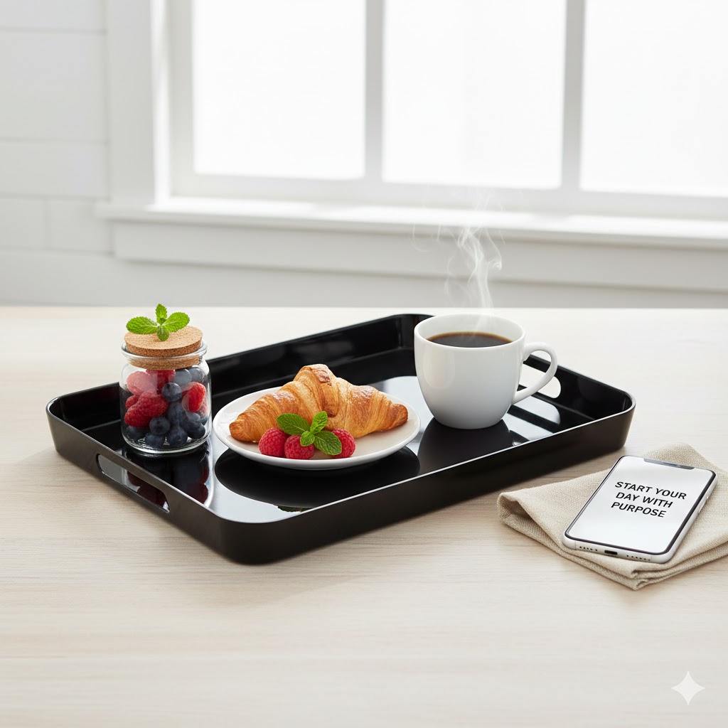 Home Plus Melamine Rectangular Serving Tray 43 × 32 cm – Black 6222019243467