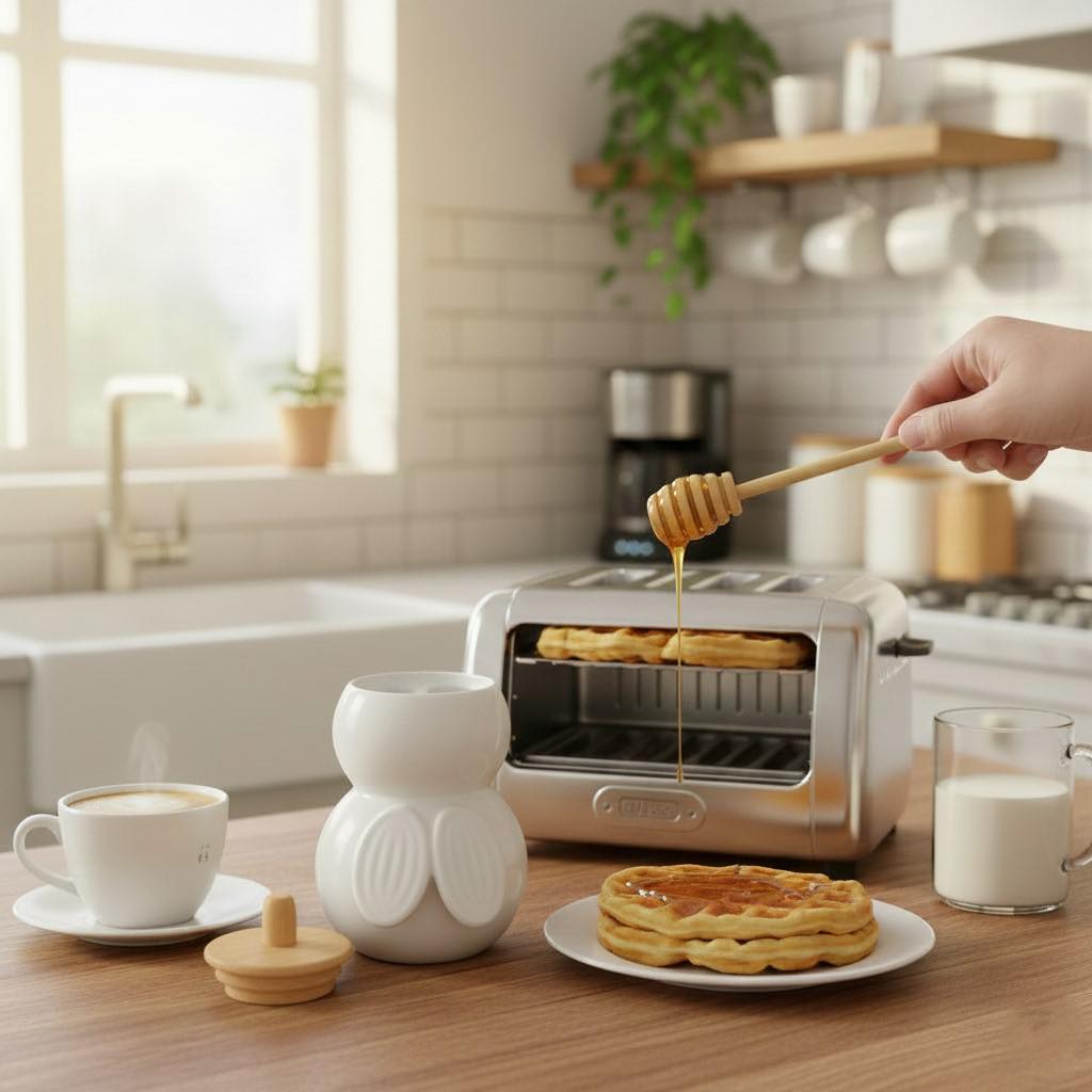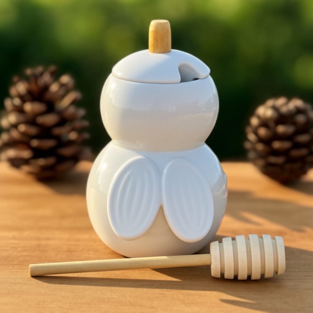 Honey Jar Porcelain with Wooden Spoon-abdo-37-151\43-113