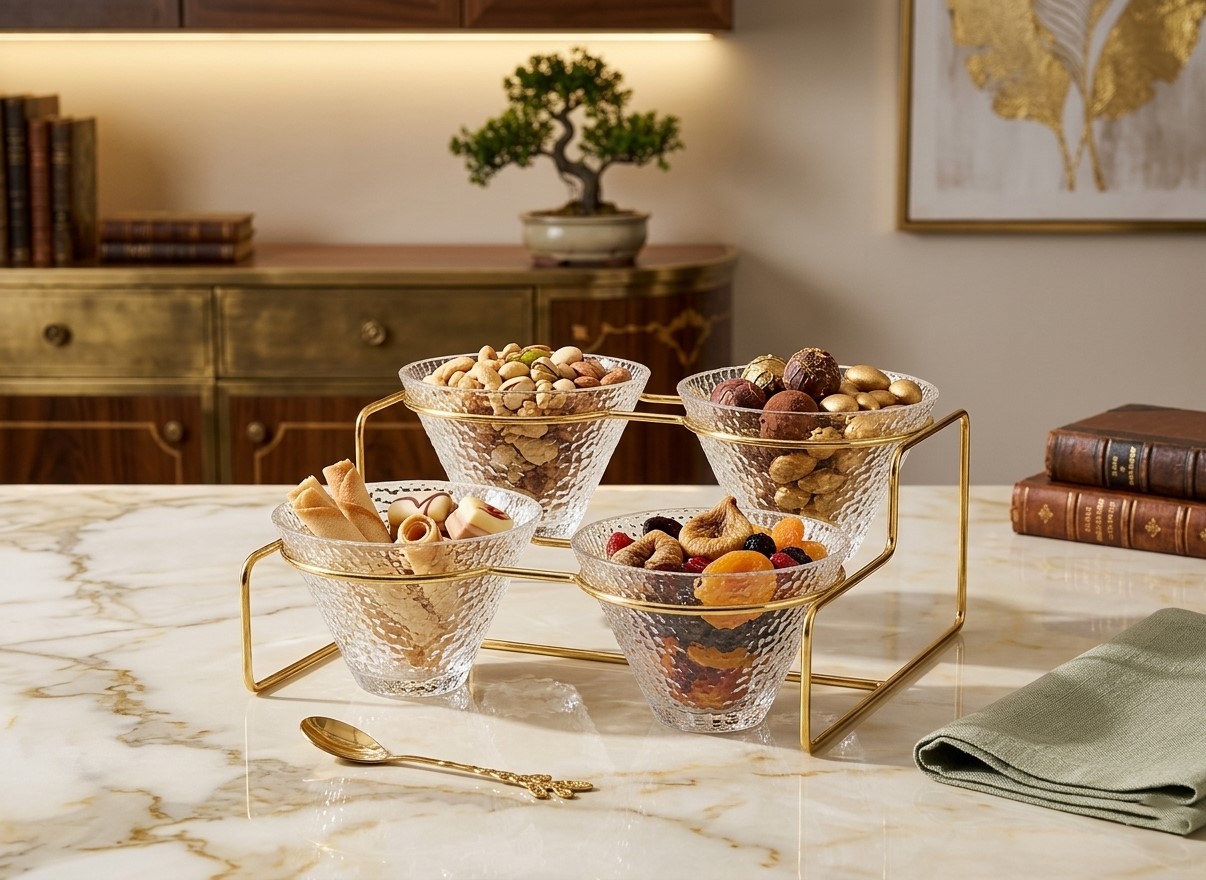Jelly and Ice Cream Set, 4 Pieces with Elegant Metal Holder, Modern Space-Saving Design, Durable Material, Easy to Clean – Dimensions: 24 × 10.7 × 17.5 cm