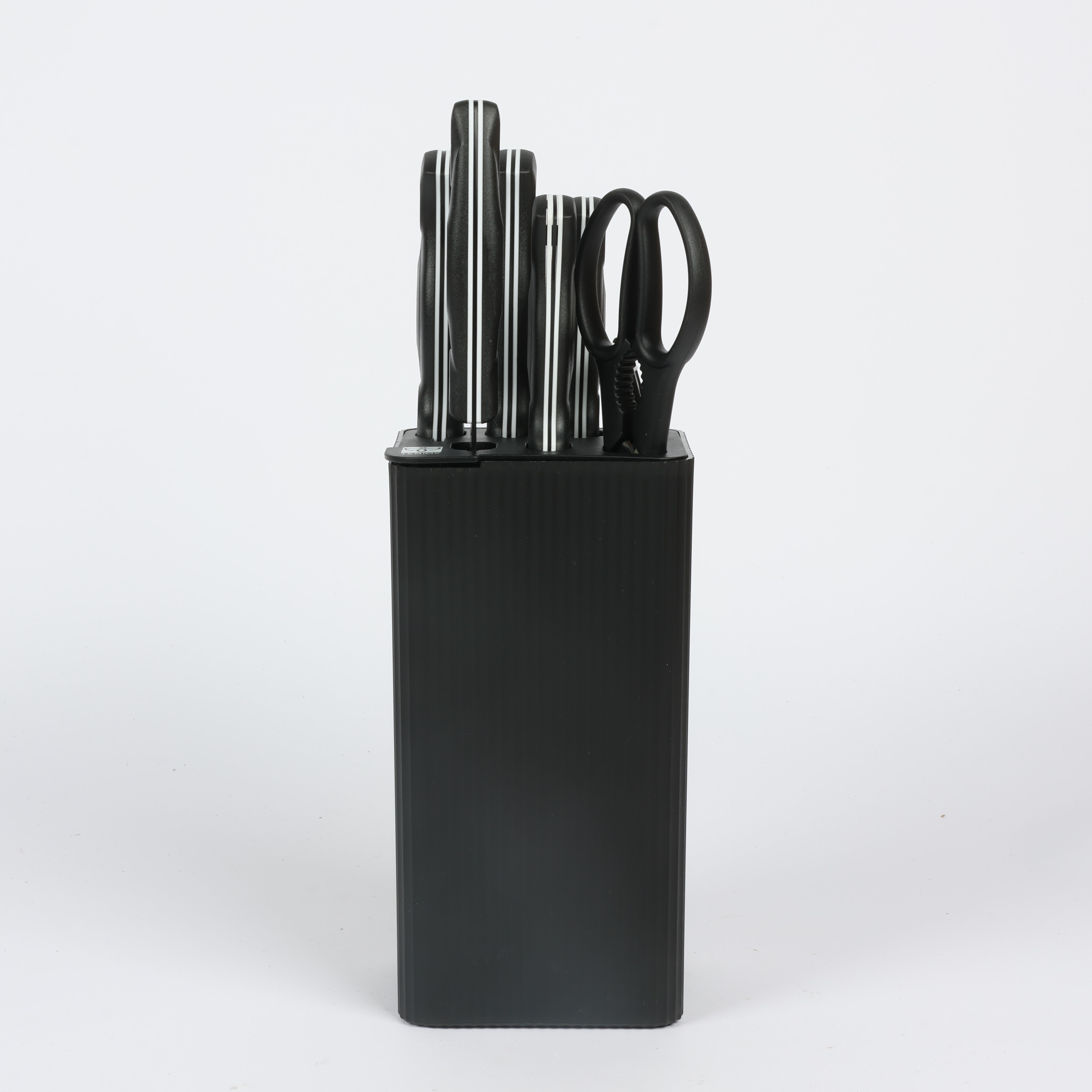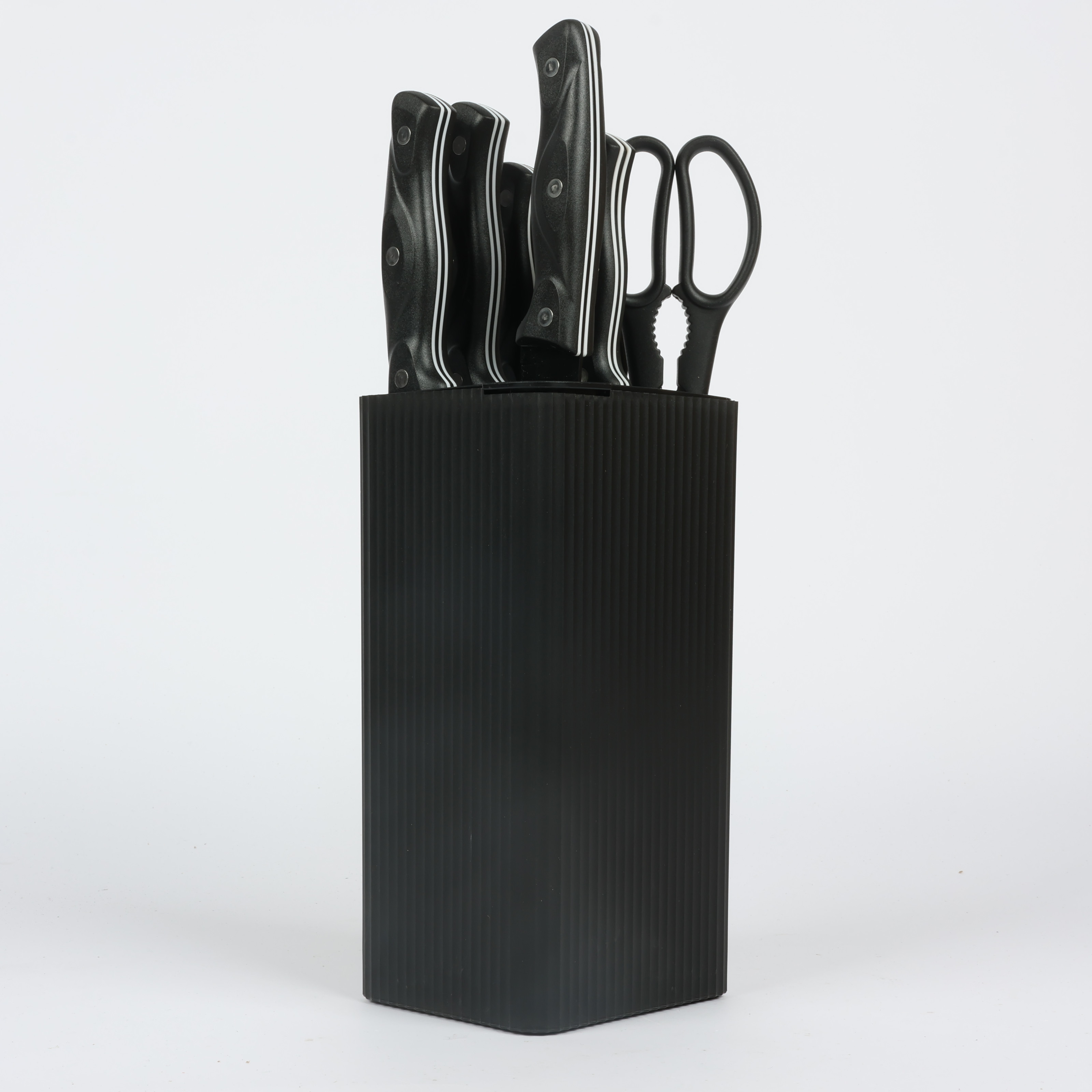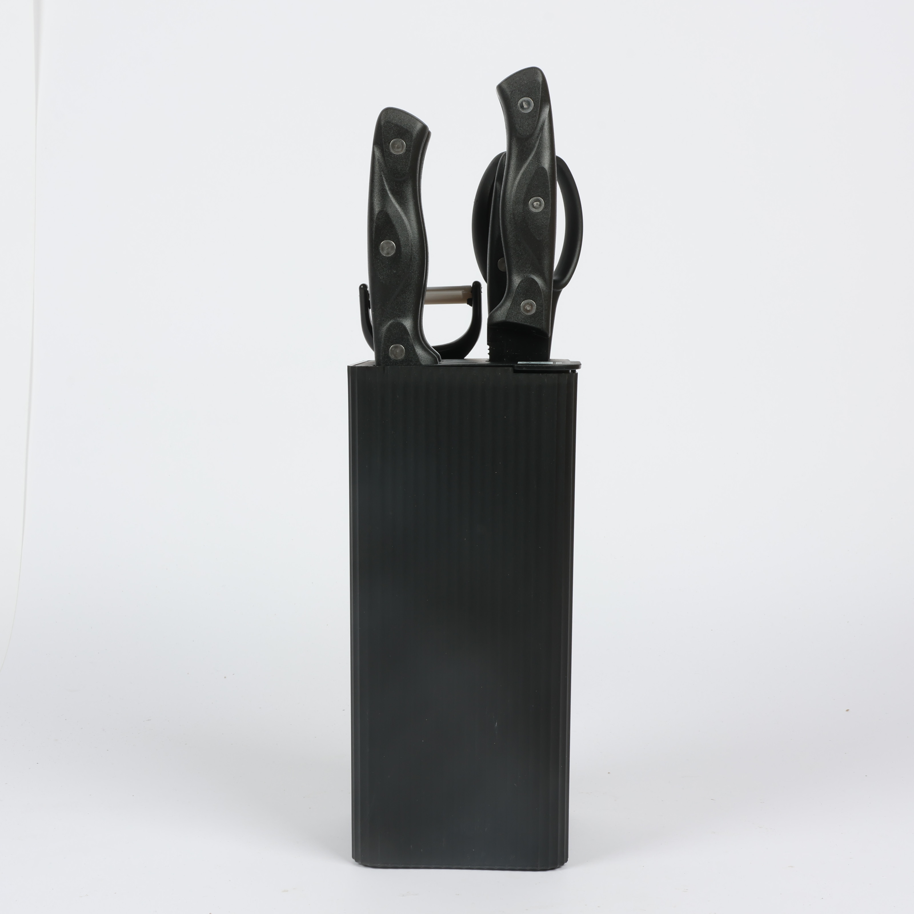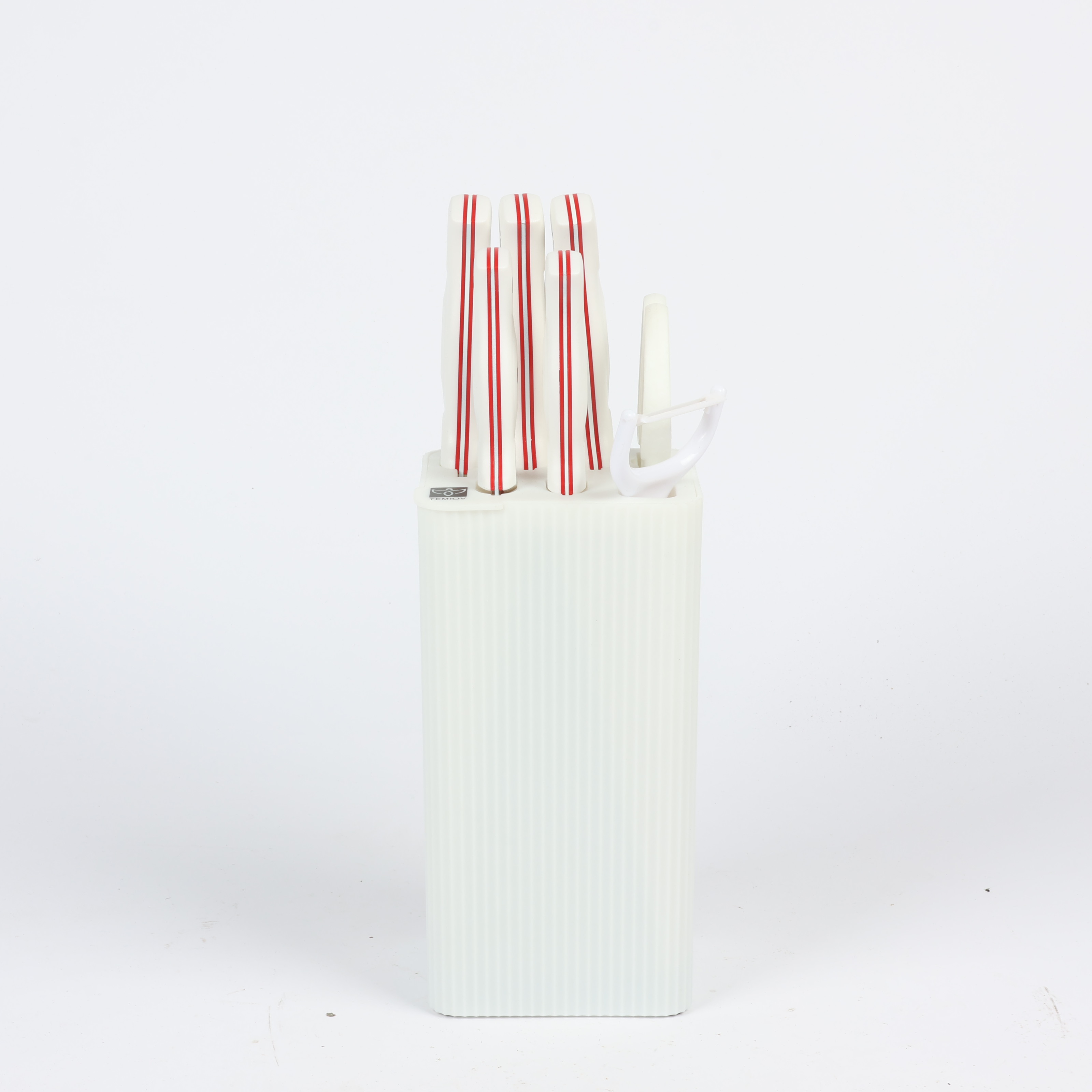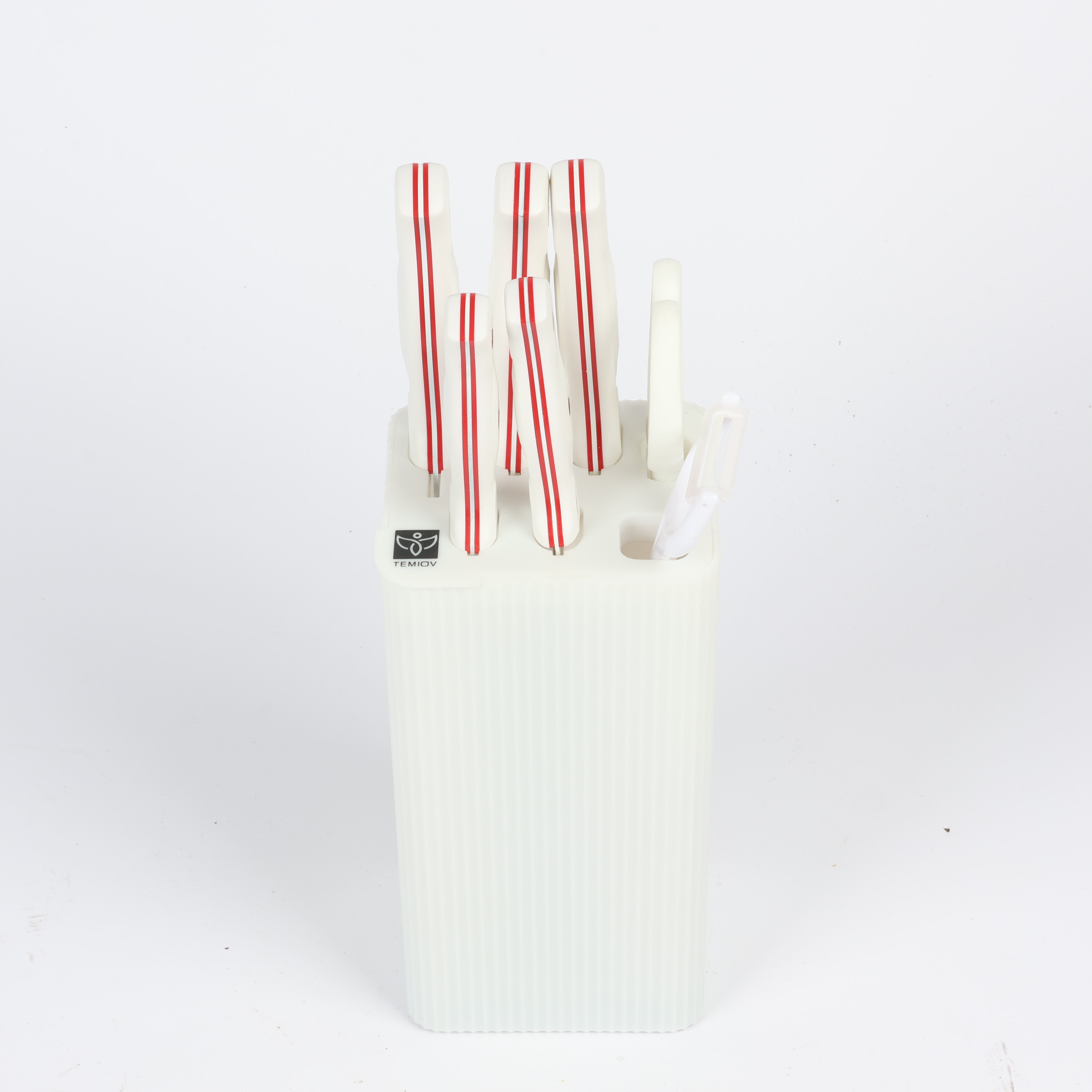 Knife Set 6-Piece with Stand: 7-inch Kitchen Knife, 8-inch Chef Knife, 8-inch Bread Knife, 5-inch Utility Knife, Kitchen Scissors, and Peeler , COLOR WHITE IN RED