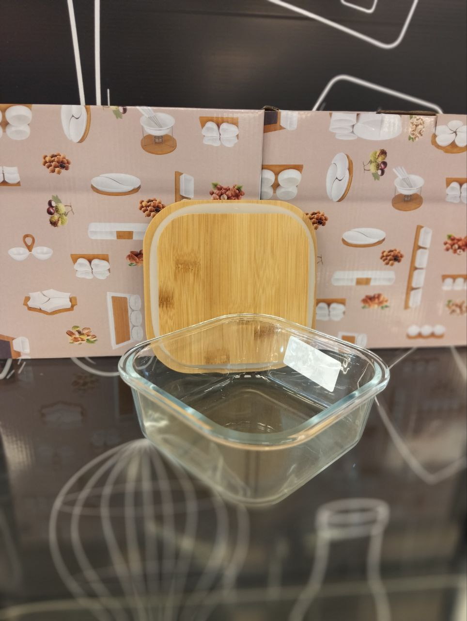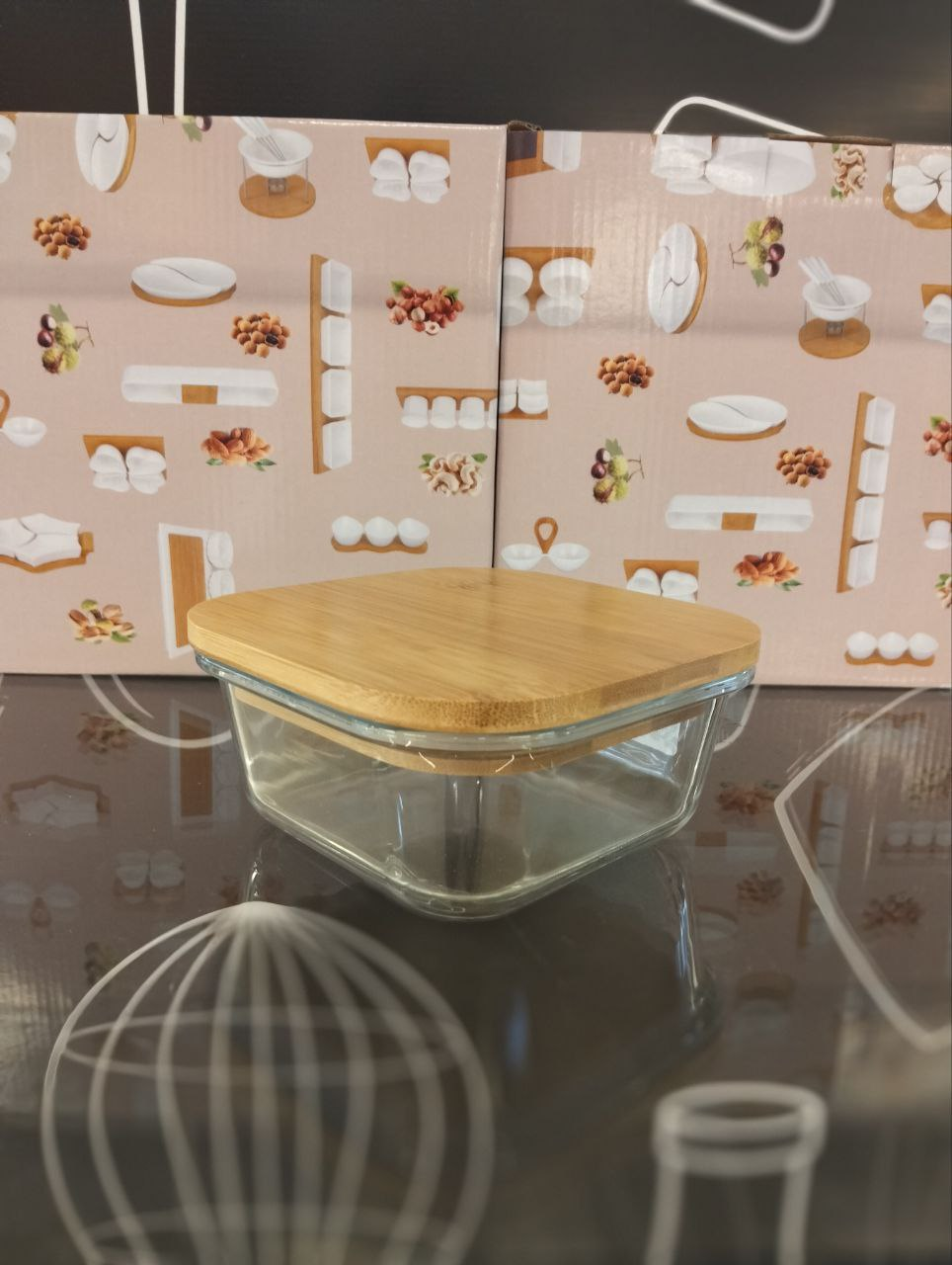 Larger than medium square transparent glass refrigerator container with lid