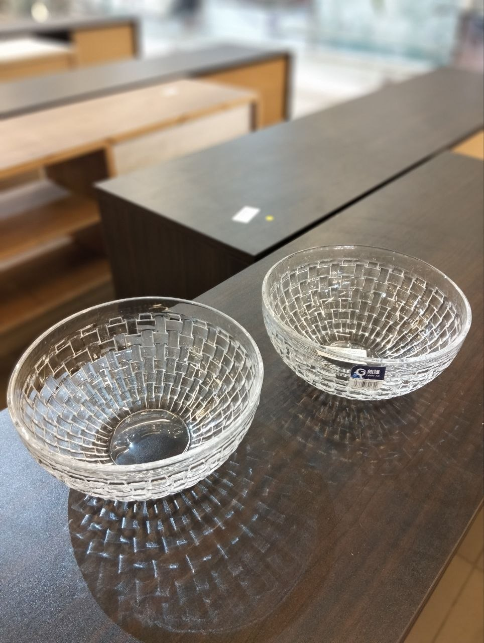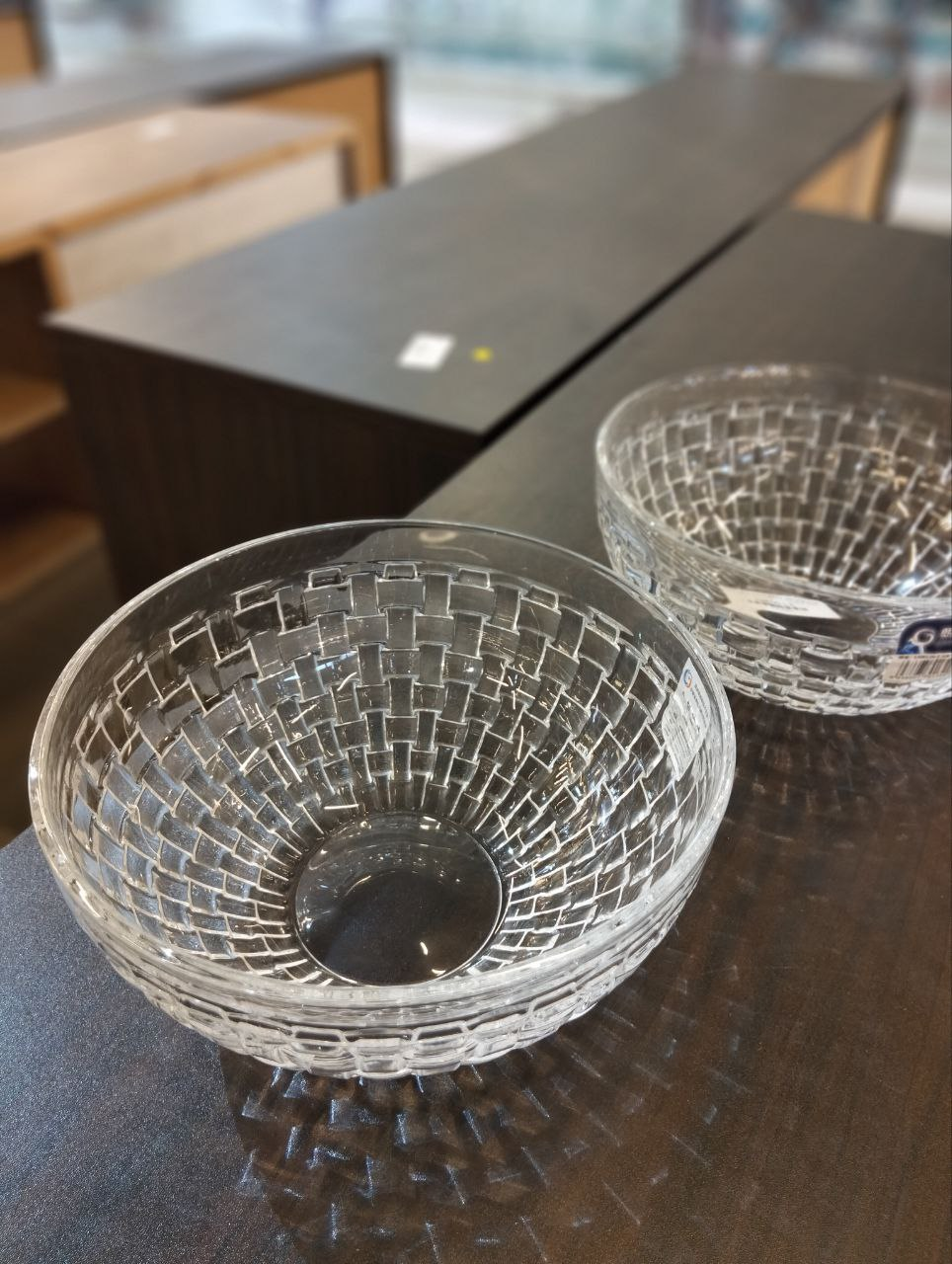 Living Home presents a luxurious 2‑piece glass bowl set, with a woven‑basket pattern on the exterior, combining traditional craftsmanship and modern glass transparency.