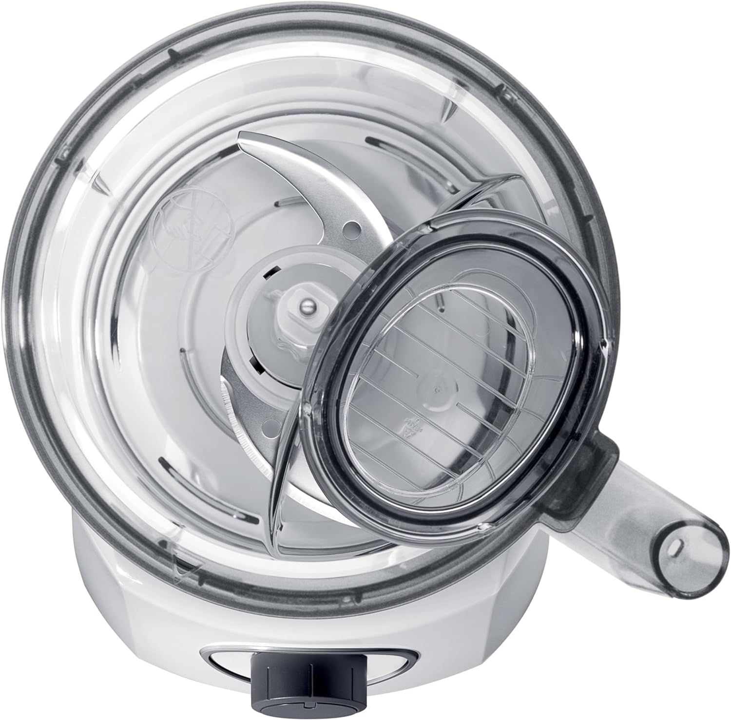 • Key Features: Compact design, MultiLevel6 knife (Ingredients are chopped, shaked and mixed perfectly thanks to its three double blades), Dishwasher-safe accessories, 2 Speed settings, 2.3 Liter transparent plastic mixing bowl, 1 Liter blender, Stainless steel discs, Cable storage, Anti-slip rubber feet