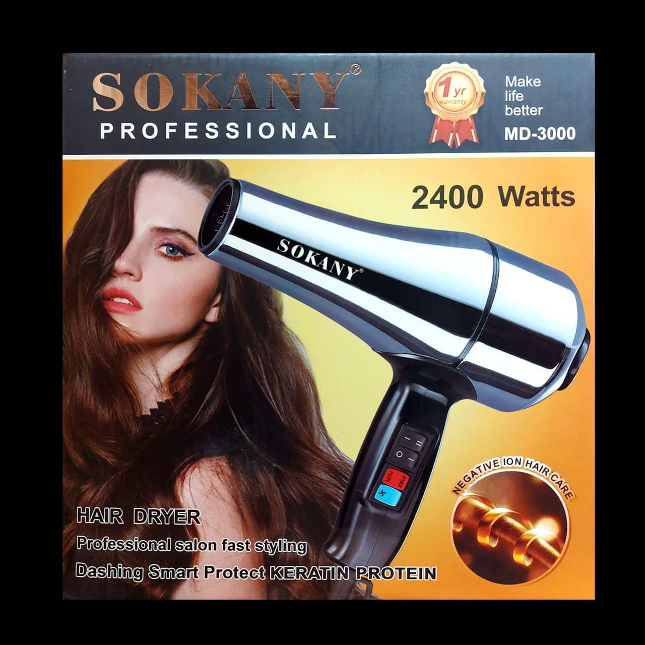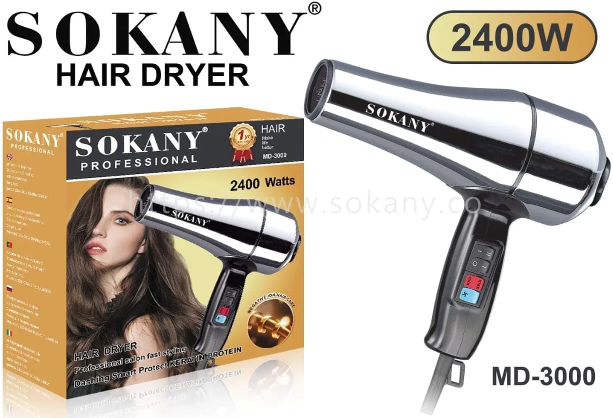 MD-3000 - Sokany Stainless Steel Hair Dryer, 2400W