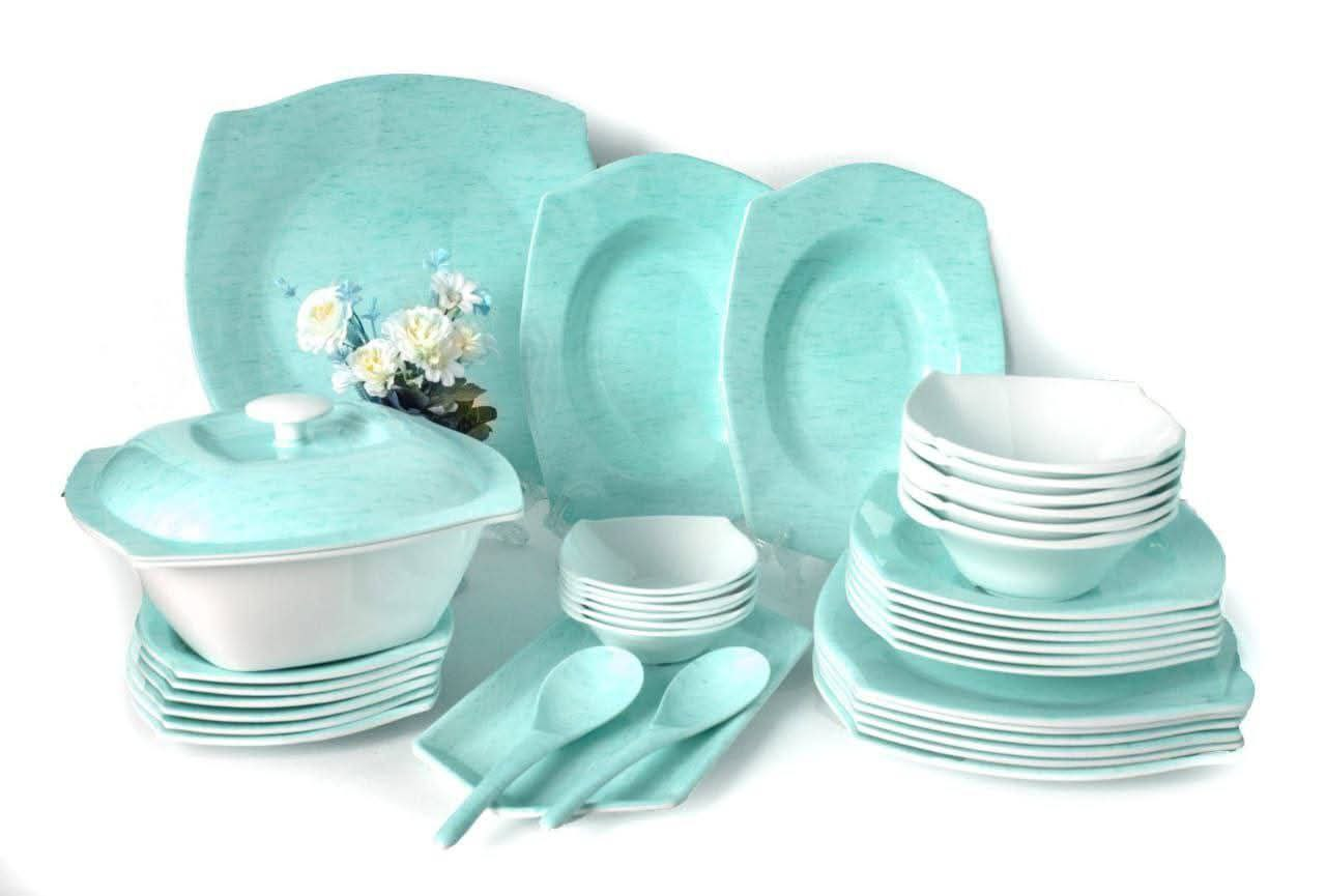 Melamine set 38 pcs square light blue