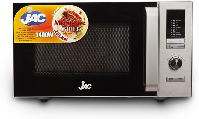 Jac Microwave 25 Liters, 8 Power Levels, with Grill, Silver, NGM-25D2-S
