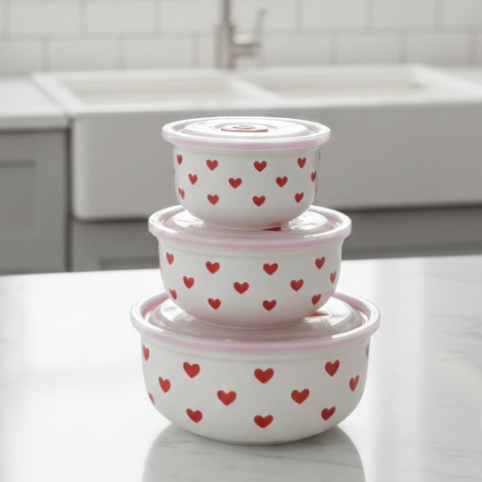 orcelain Refrigerator Set, 3 Pieces, Red Heart Design - abdo - 103 - 2 E