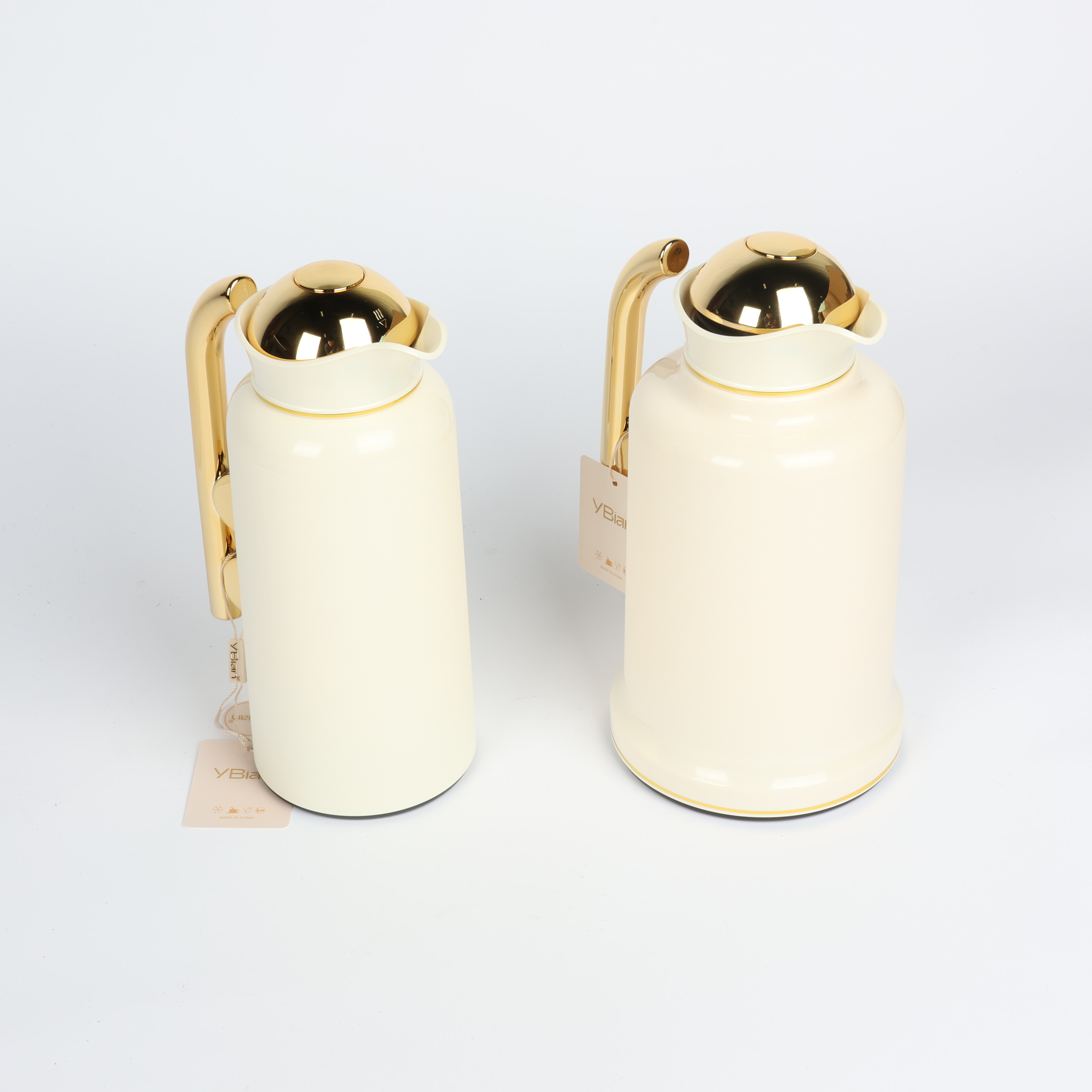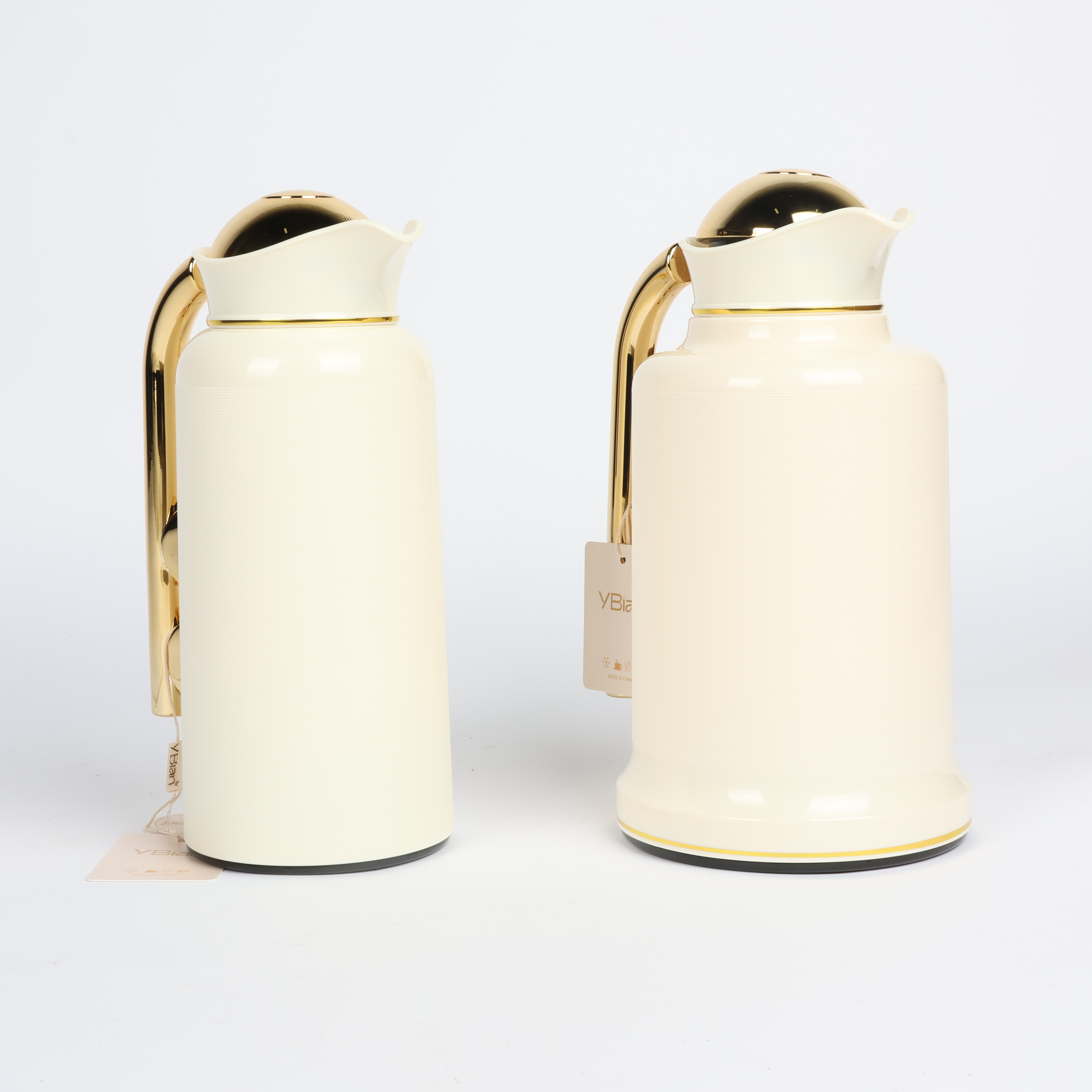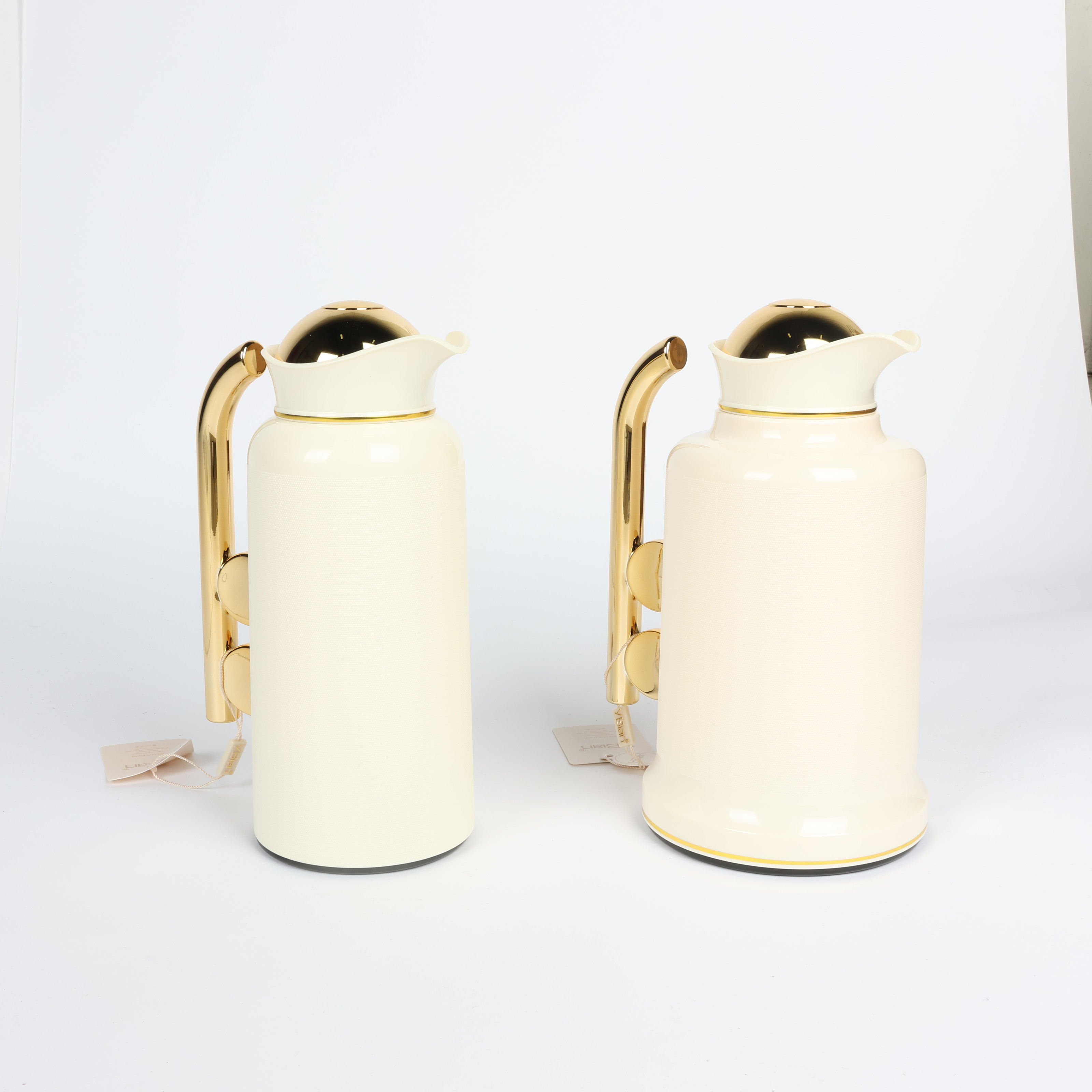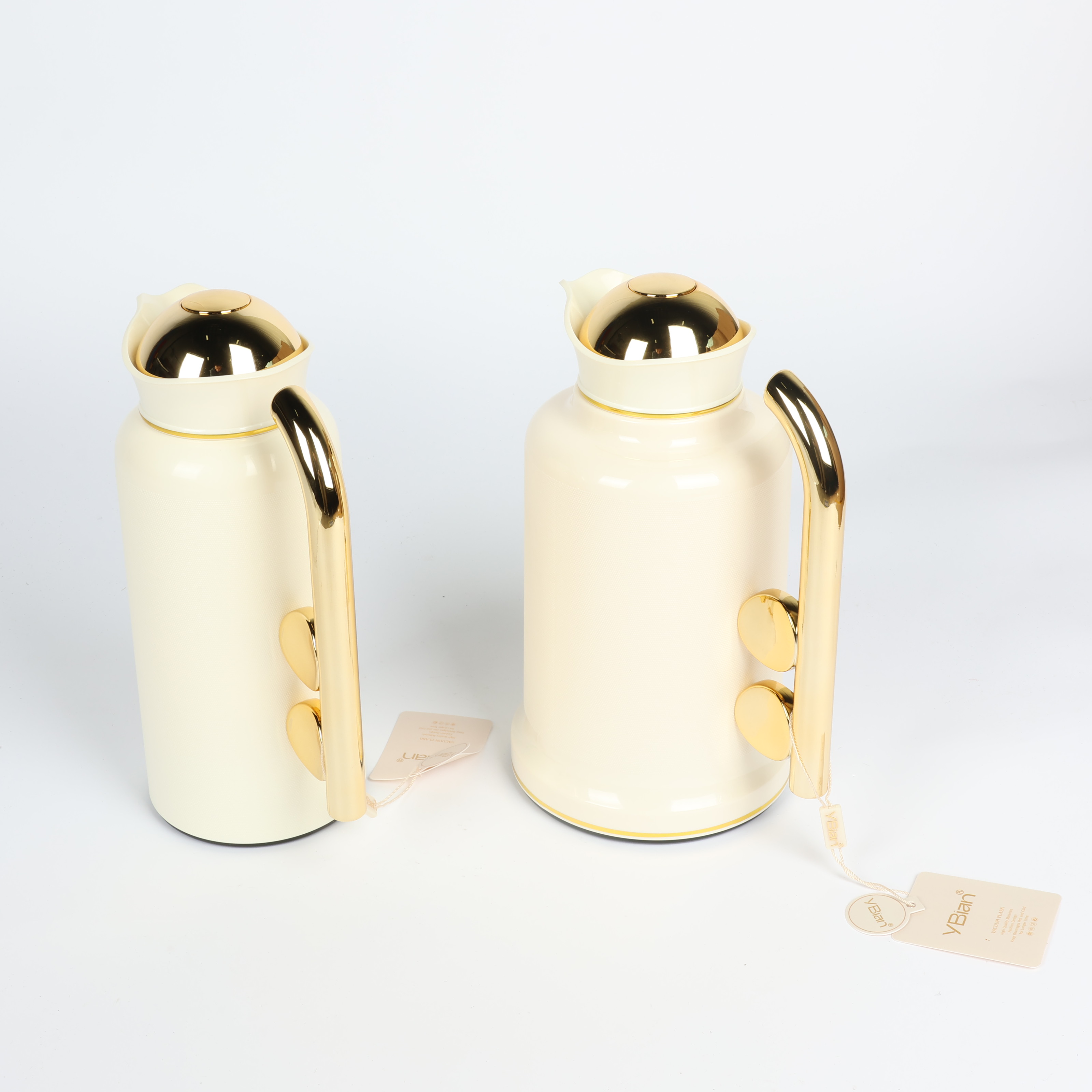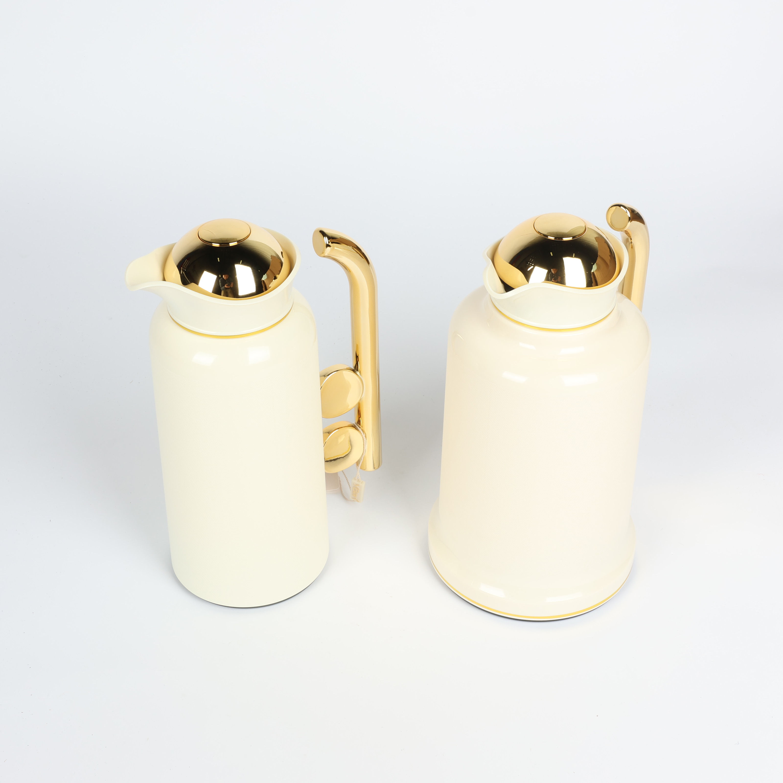 Penguin Thermos Flask Set – 2 Pieces (1L + 0.7L), Matte Cream Color with Gold Handle