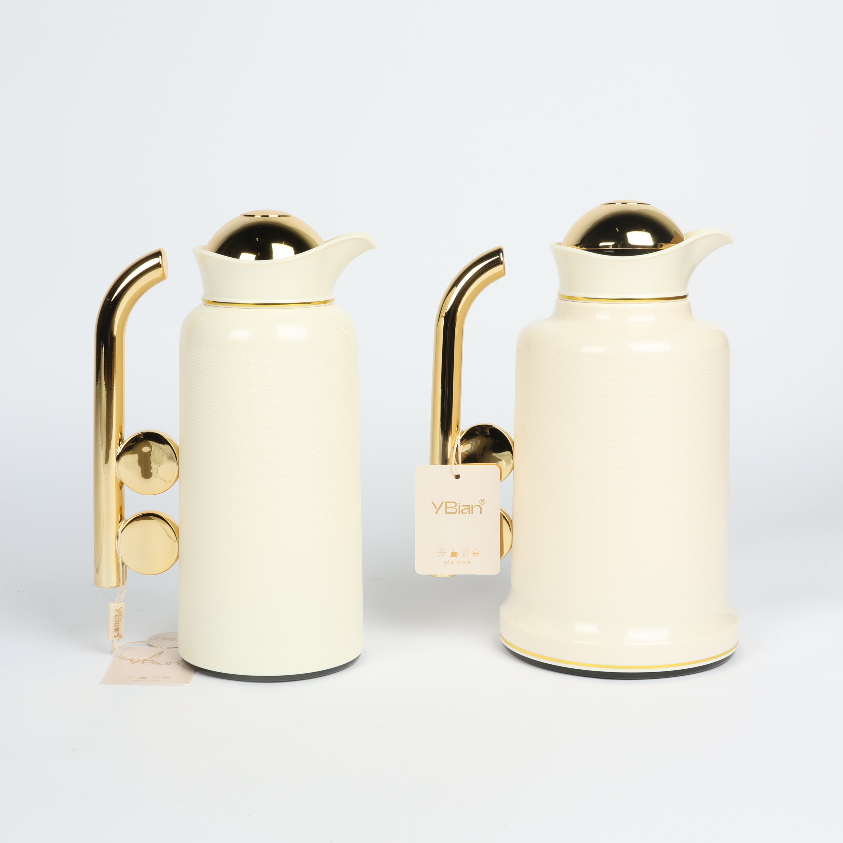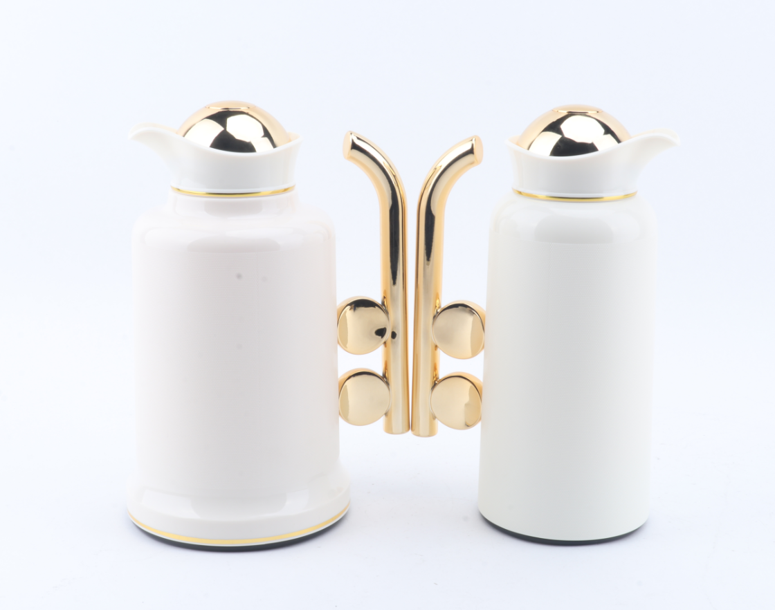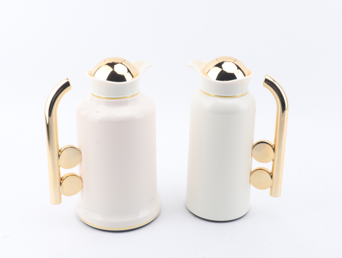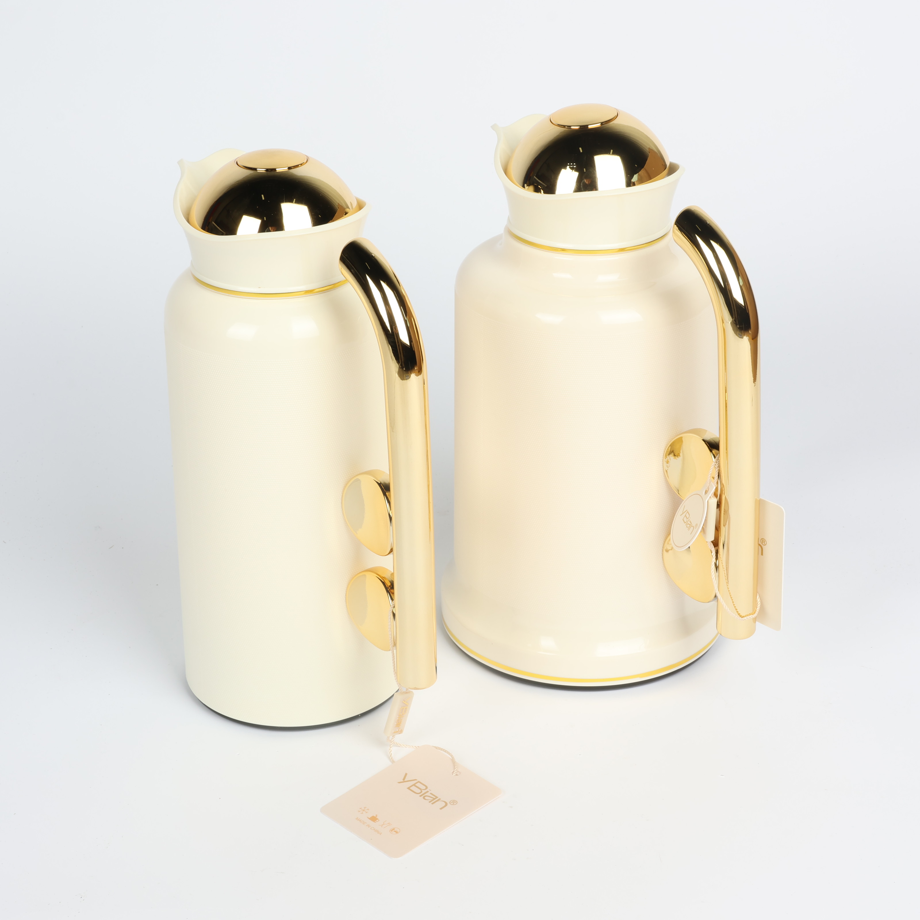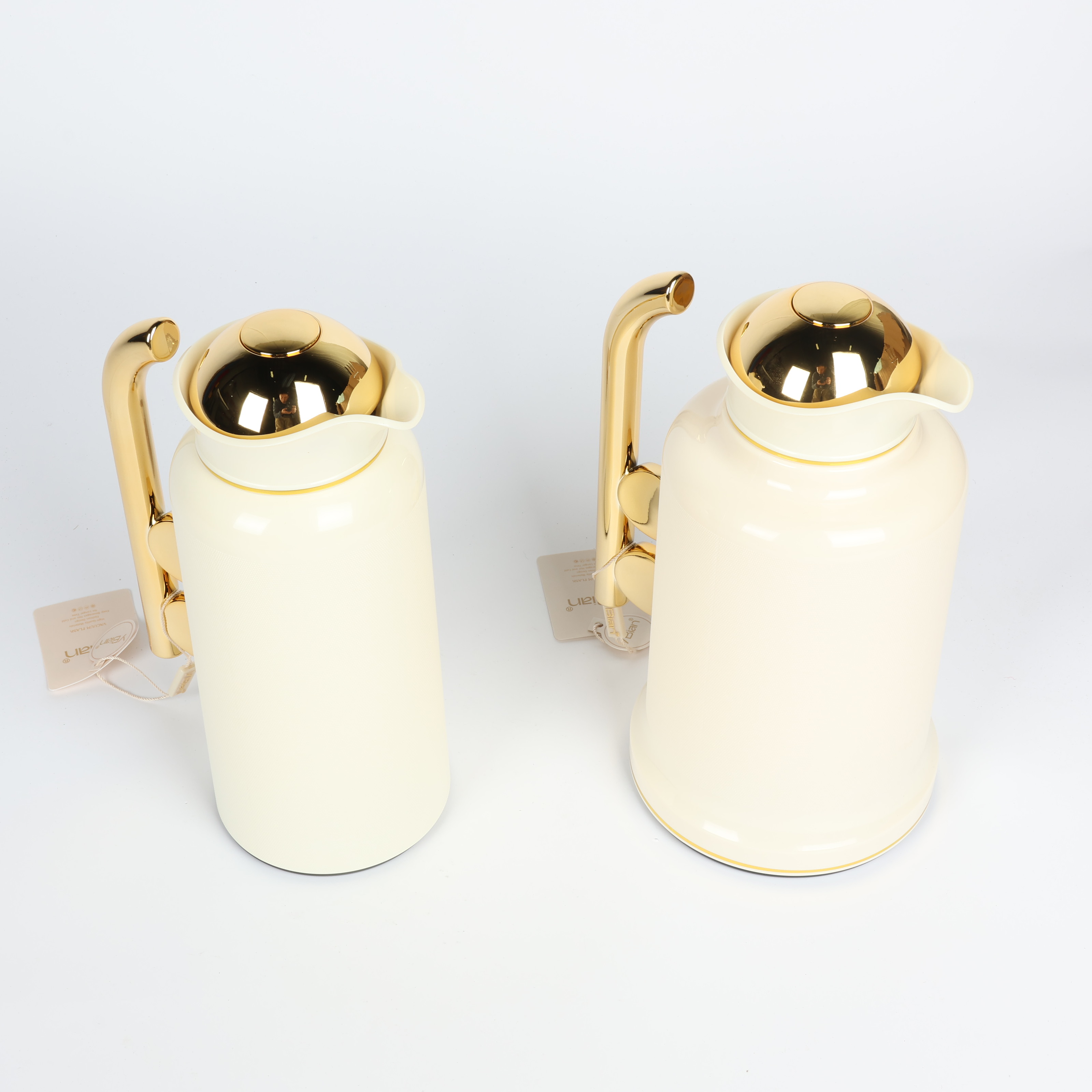 Penguin Thermos Flask Set – 2 Pieces (1L + 0.7L), Matte Cream Color with Gold Handle