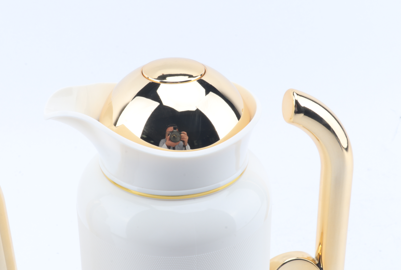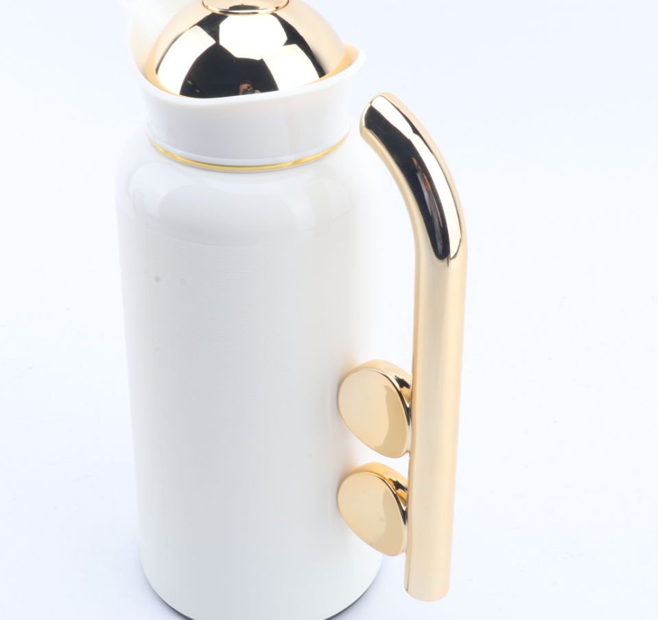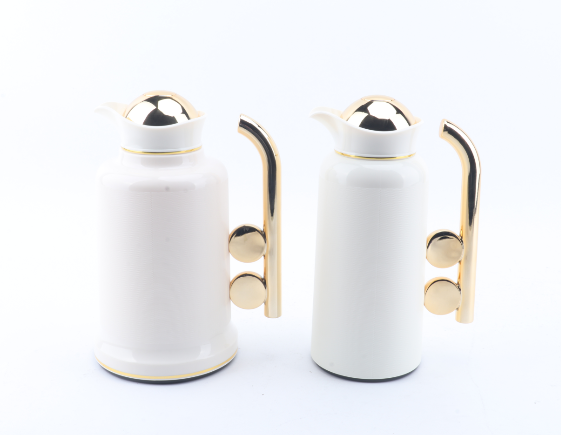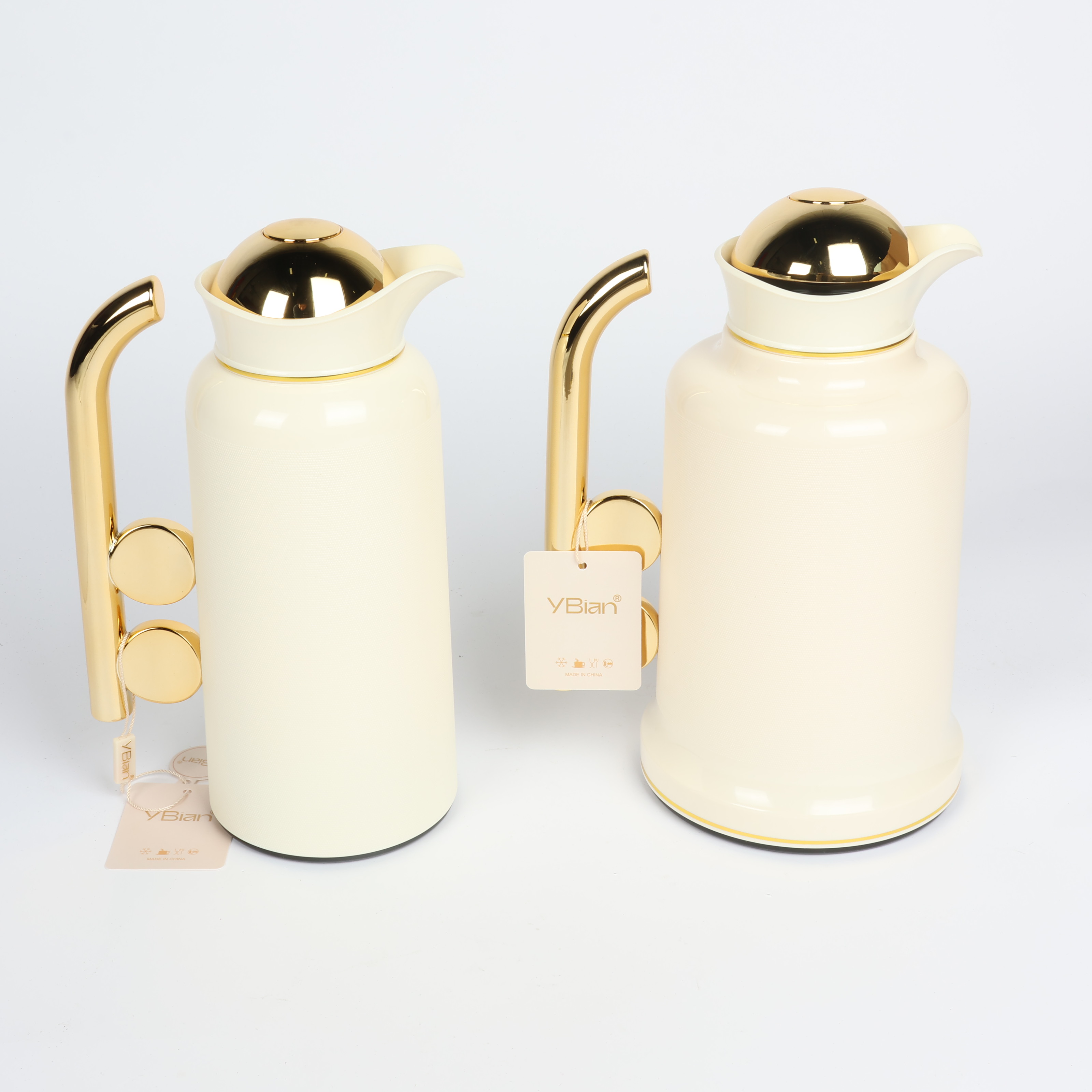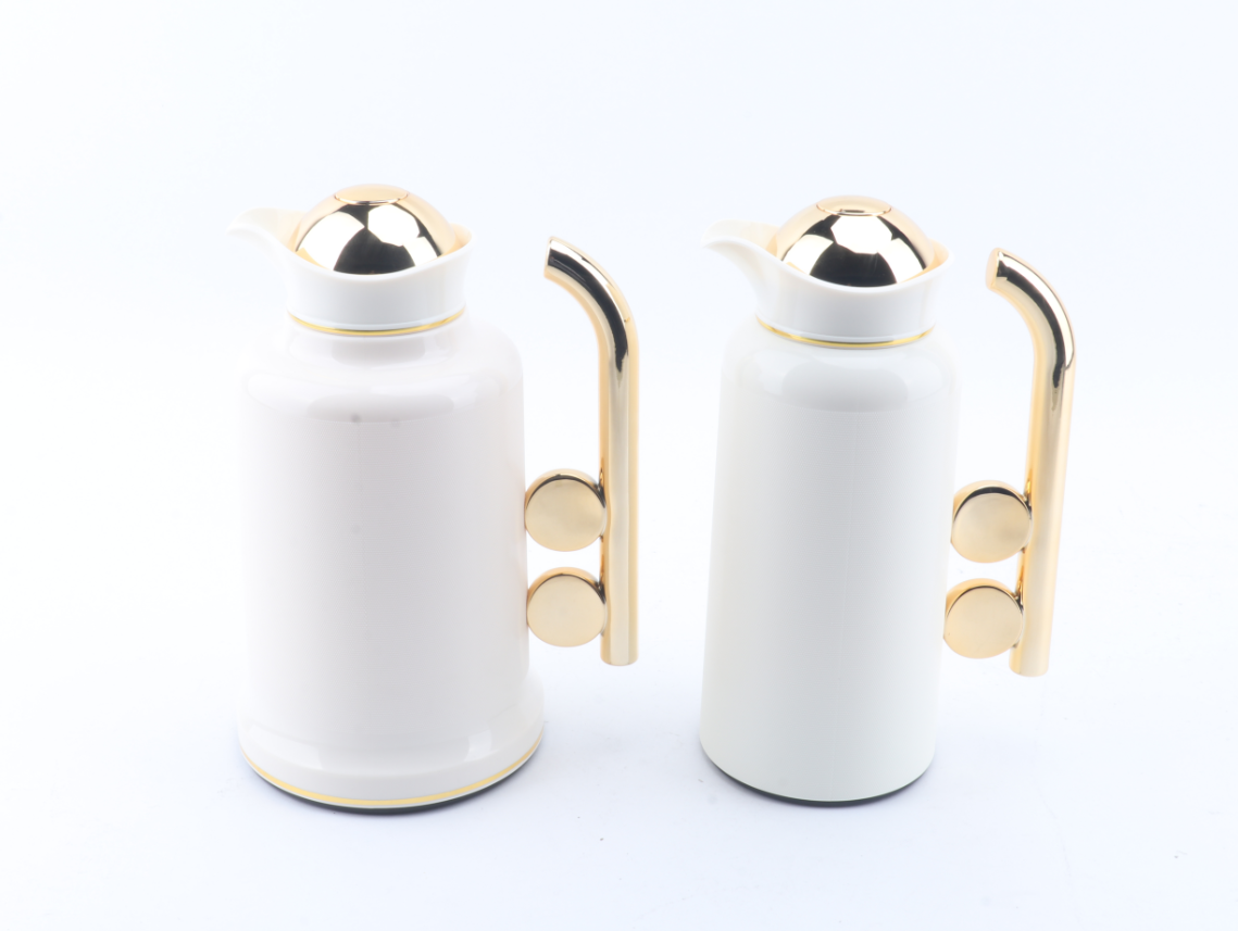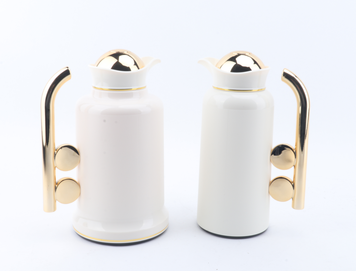Penguin Thermos Flask Set – 2 Pieces (1L + 0.7L), Matte Cream Color with Gold Handle