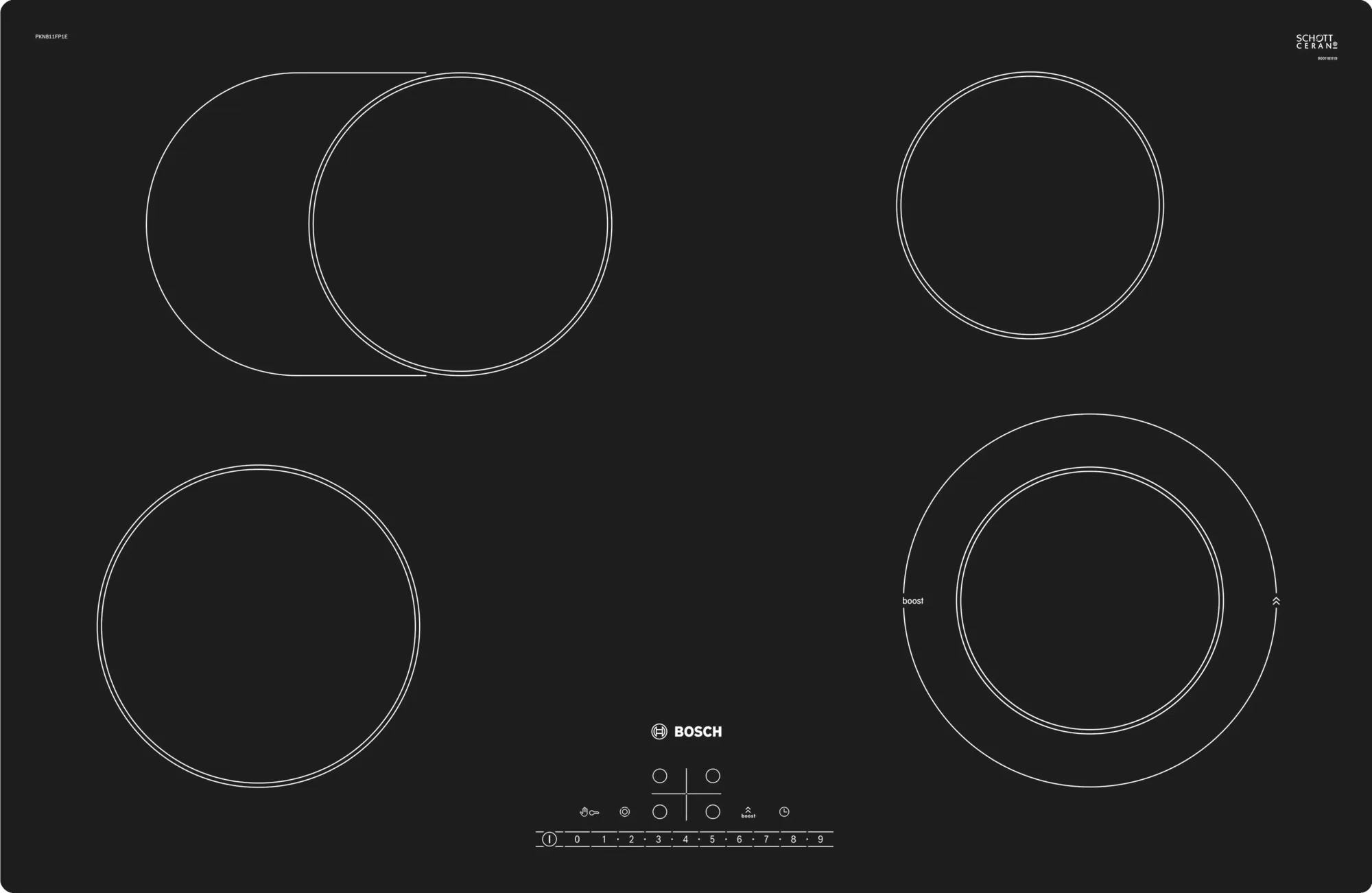 BOSCH Hob Built-In Electric 80 cm 4 Zones Touch Control , Black - PKN811FP1E
