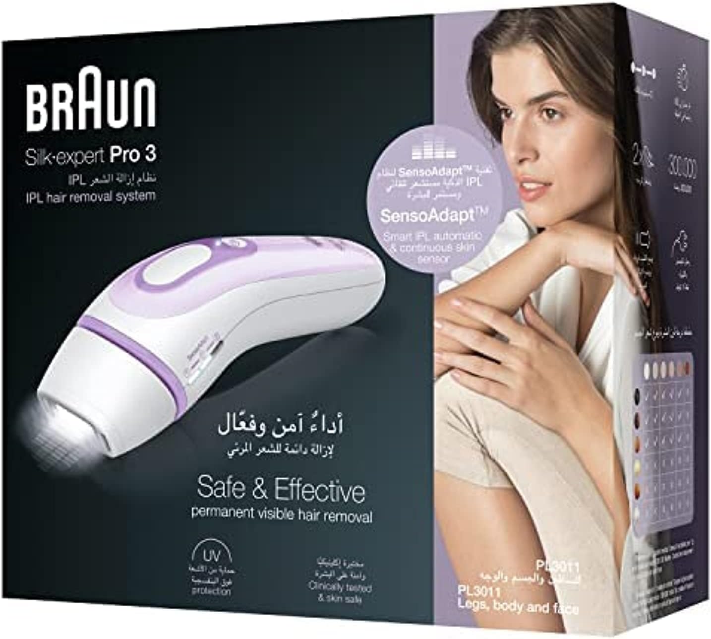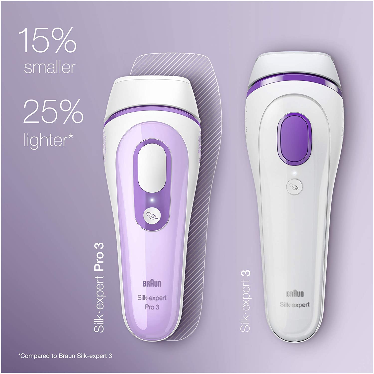 Silk·expert Pro, Braun’s latest generation IPL. Silk·expert Pro 3 ensures permanent hair reduction in just 3 months*. The safest IPL technology, clinically tested and dermatologically accredited as skin safe by a leading international skin health organization (Skin Health Alliance). The only IPL that automatically and continuously adapts to skin tone for a safe and effective visible permanent hair removal†. It also includes a premium bag to store and transport the device conveniently and a Venus razor for the pre-treatment. Get results 2 times faster than with previous Silk·expert 3: just 9 minutes for both legs. 300,000 flashes, 20% more than previous Silk·expert 3. *Assessed on lower leg, armpits & bikini, following the treatment schedule. Individual results may vary. †Shared technology with Cyden. **For more information, visit Braun.com website