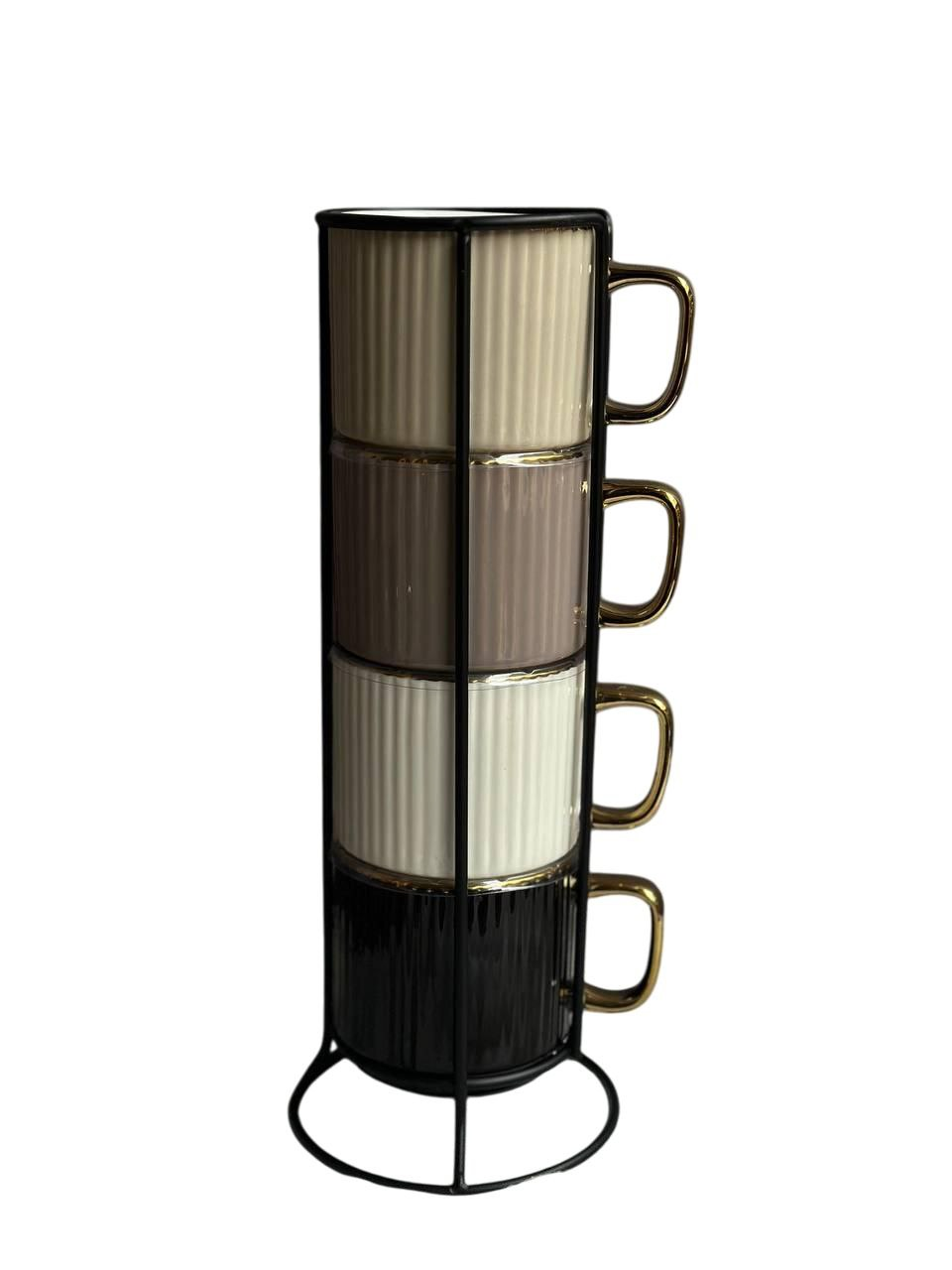 Porcelain mug set 4 pieces on a metal stand
