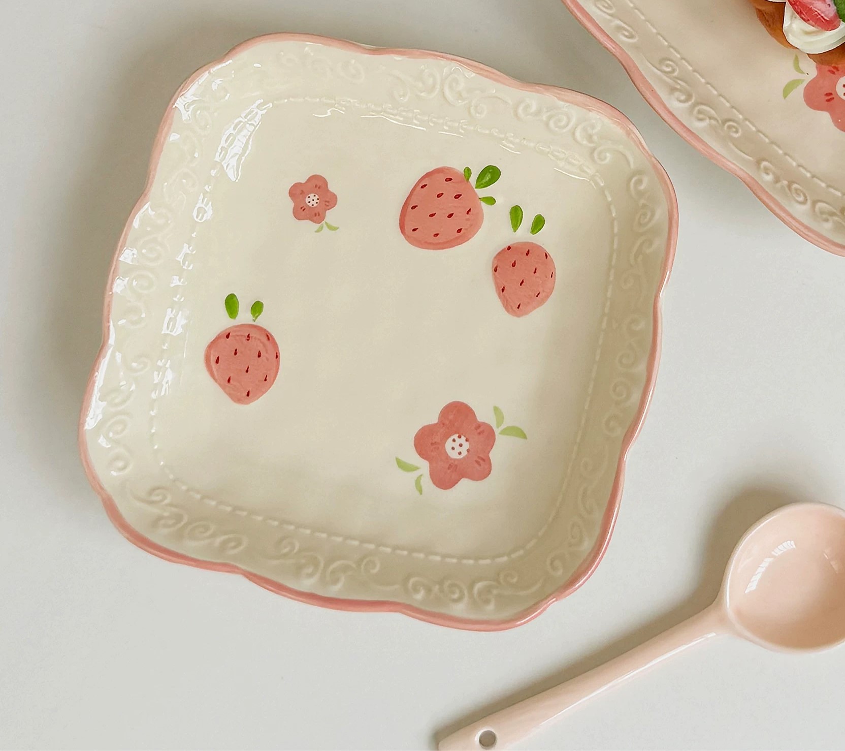 Porcelain Square Deep Plate, Strawberry Design, 18 cm - abdo-201-470 A