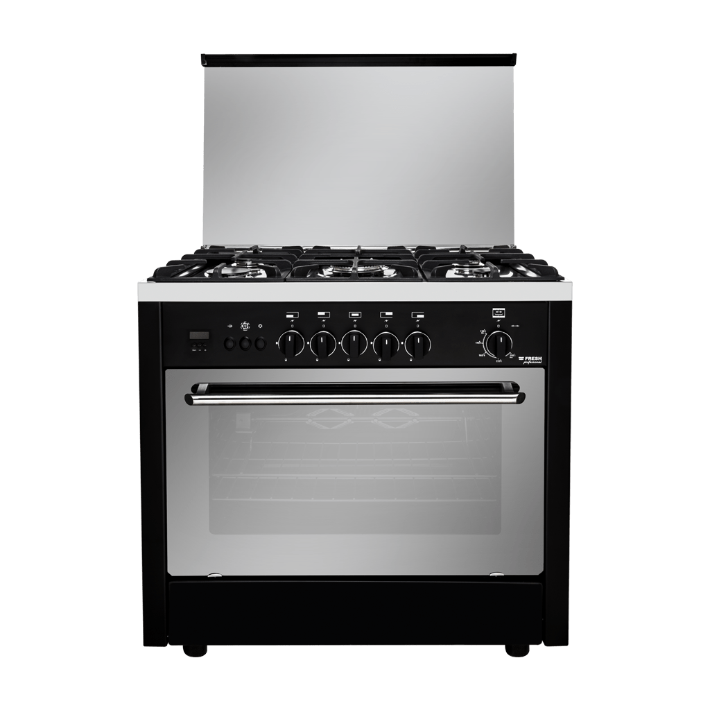 Fresh Professional Gas Cooker, 5 Burners, Black, 90 cm Full Safety Digital, Fan - 087 - PROFESSIONAL90-CS-