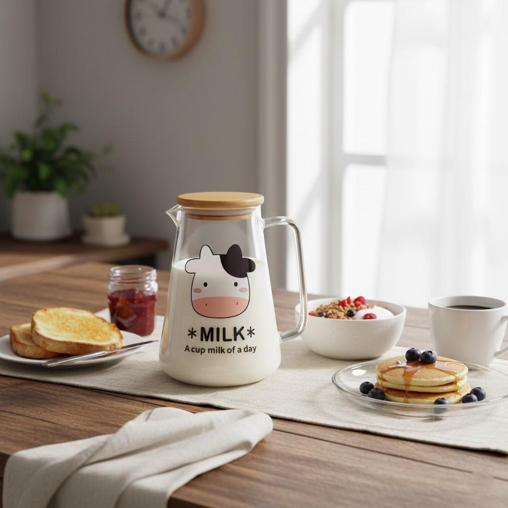 Pyrex Milk Pot with Wooden Lid , Cow Design - abdo - 43 - 307