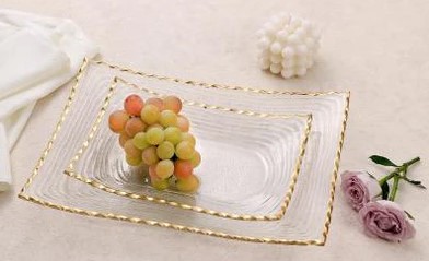 Danny Home glass serving tray rectangular with gilded frame RW06-01