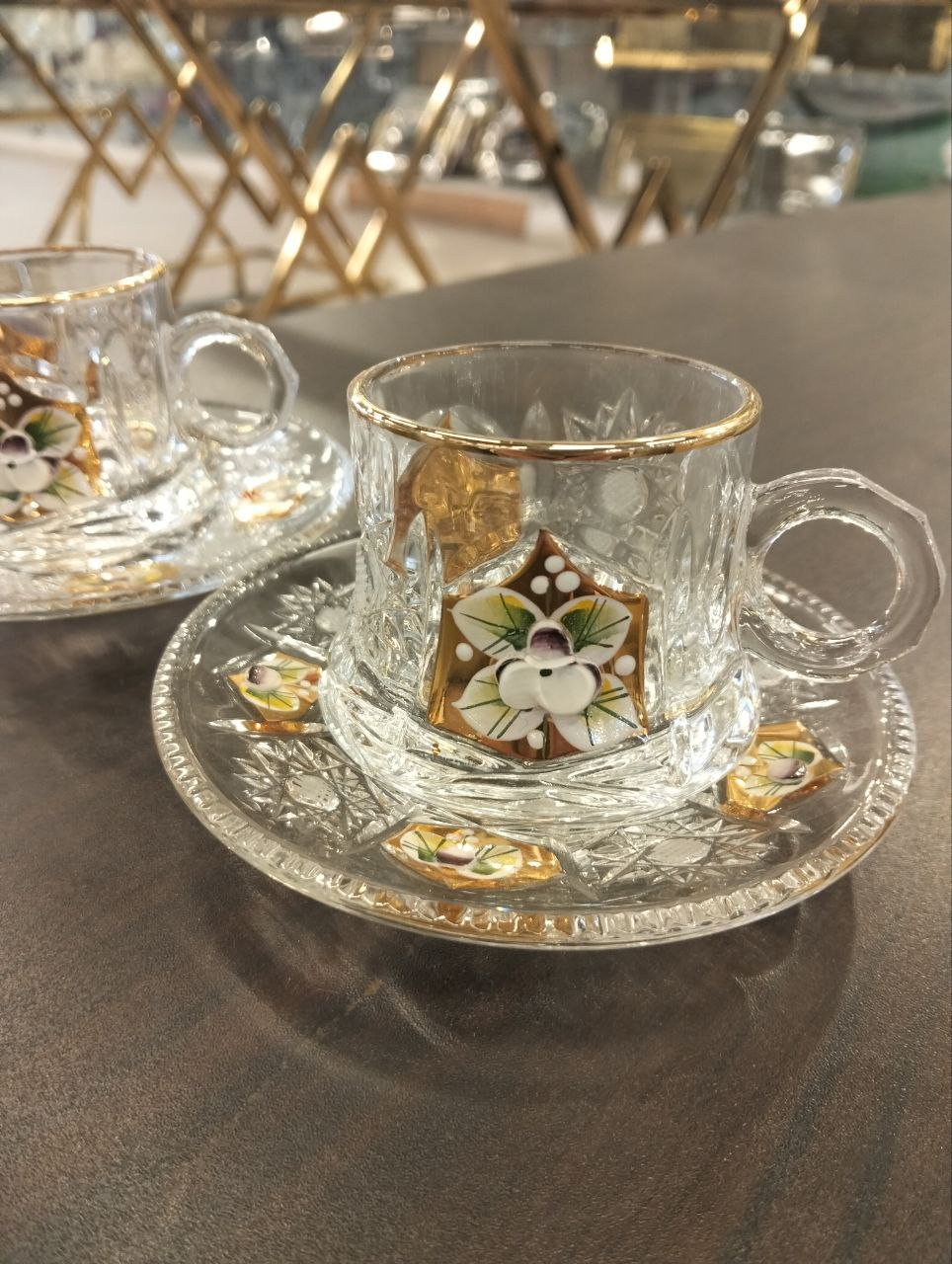 Queen Espresso Cup Set Embossed Flower – Hand-Embellished, 6 Pieces