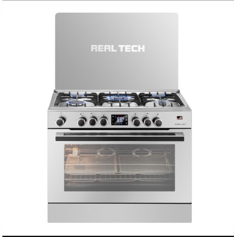 Real Tech Cooker Shark Model – 90×60 | Italian Oven Chambers | Steel | Fan | Cast | Sensor | Touch | Easy Clean Door | Oven Side Grids | Full Safety | Hydraulic Door | Air Fryer | Cooling Fan | Knob Ignition | Gas Cut off (Control)