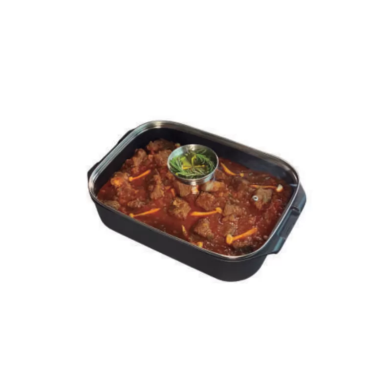 Roasting Tray with Lid 40×25 cm - Future - Multipurpose cast aluminum body, heat-resistant glass lid, double non-stick Exilan Plus coating, Impacteel heat-distributing base, lid with edge, vent and aroma infuser, suitable for all stove types and full indu