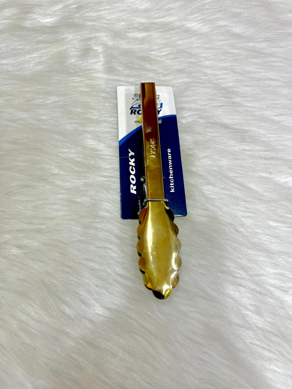 ROCKY Food Tong Leaf Shape Small, Stainless golden