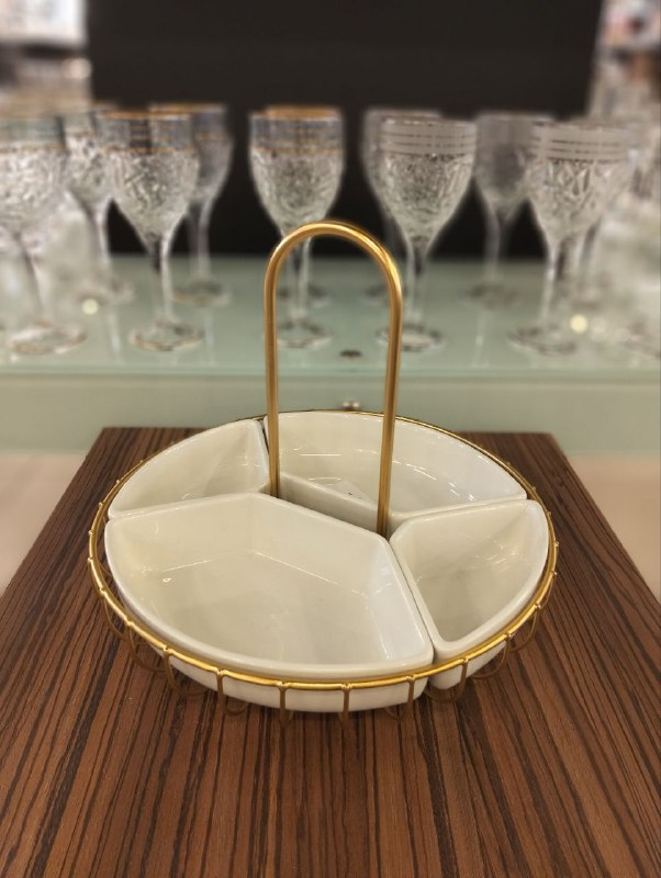 Round divided nut tray with creamy color and gold handle, code CIR-33-W Four Seasons
