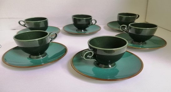 Royal Alfredo Coffee Set, 12 pcs, Porcelain (6 Coffee Cups + 6 Saucers), Cube – Jada, Dark Olive Green