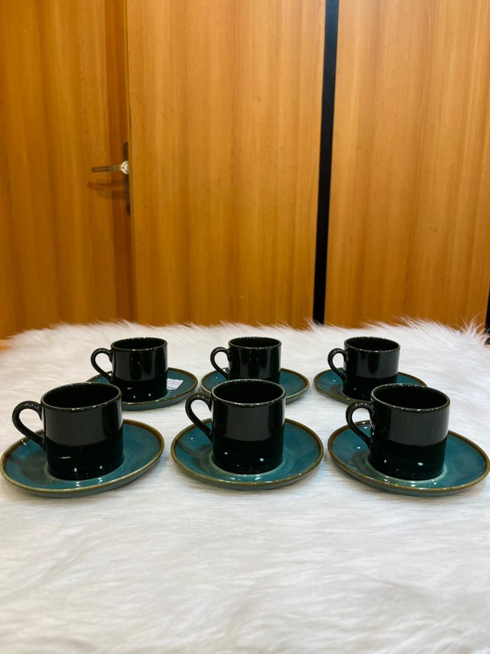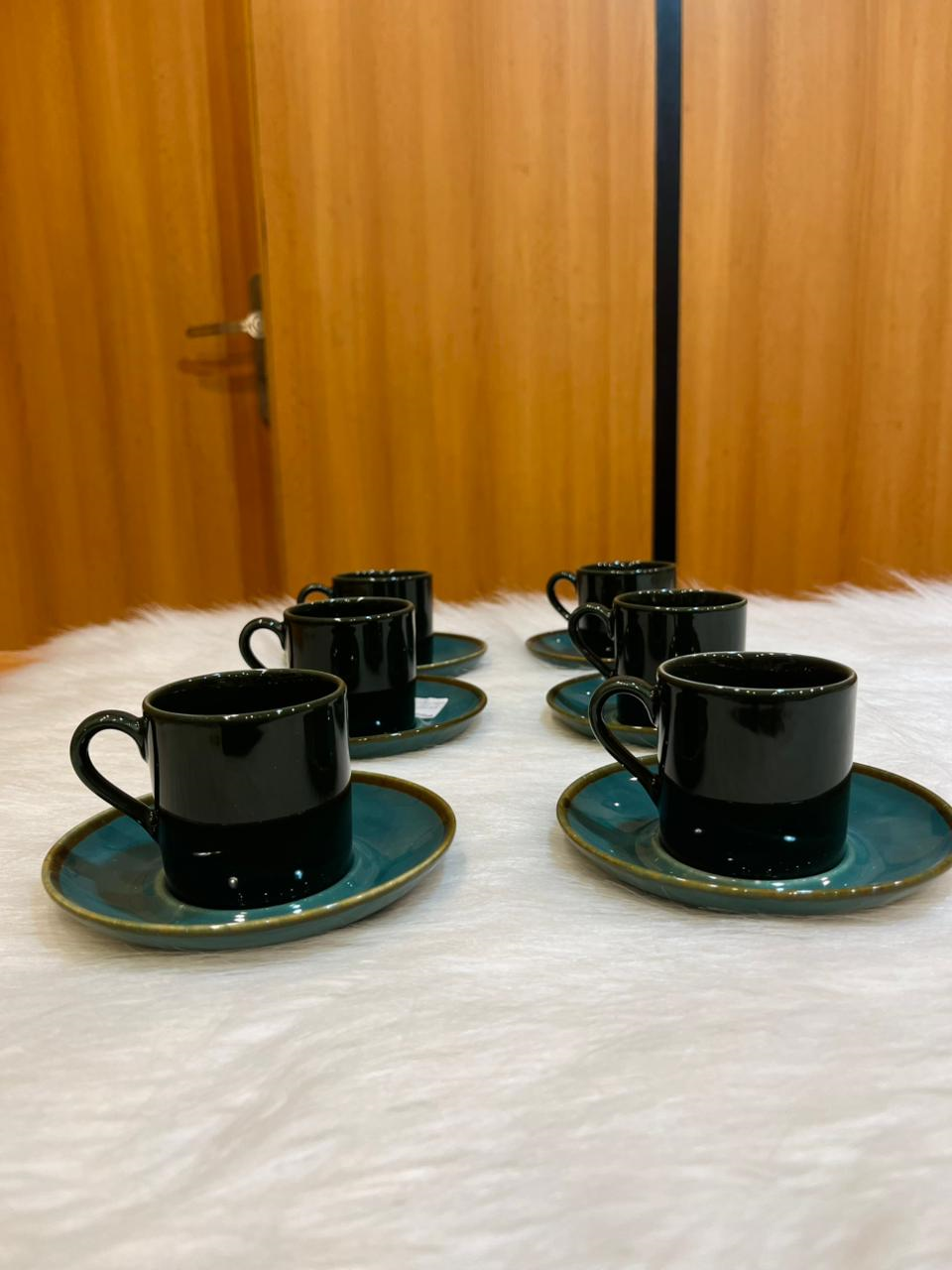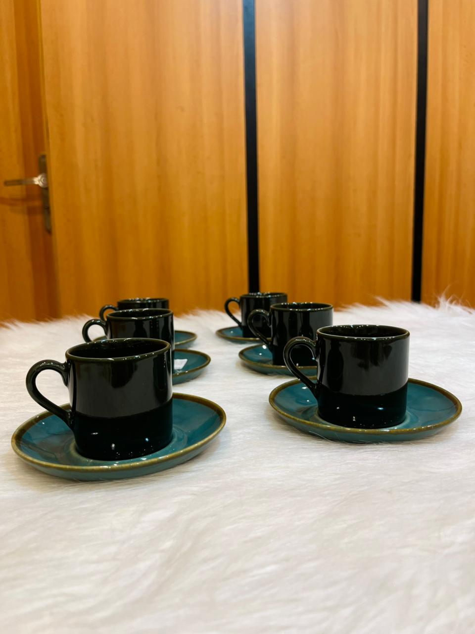 Royal Alfredo Coffee Set, 12 pcs, Porcelain (6 Coffee Cups + 6 Saucers), New Dora – Jada, Dark Olive Green