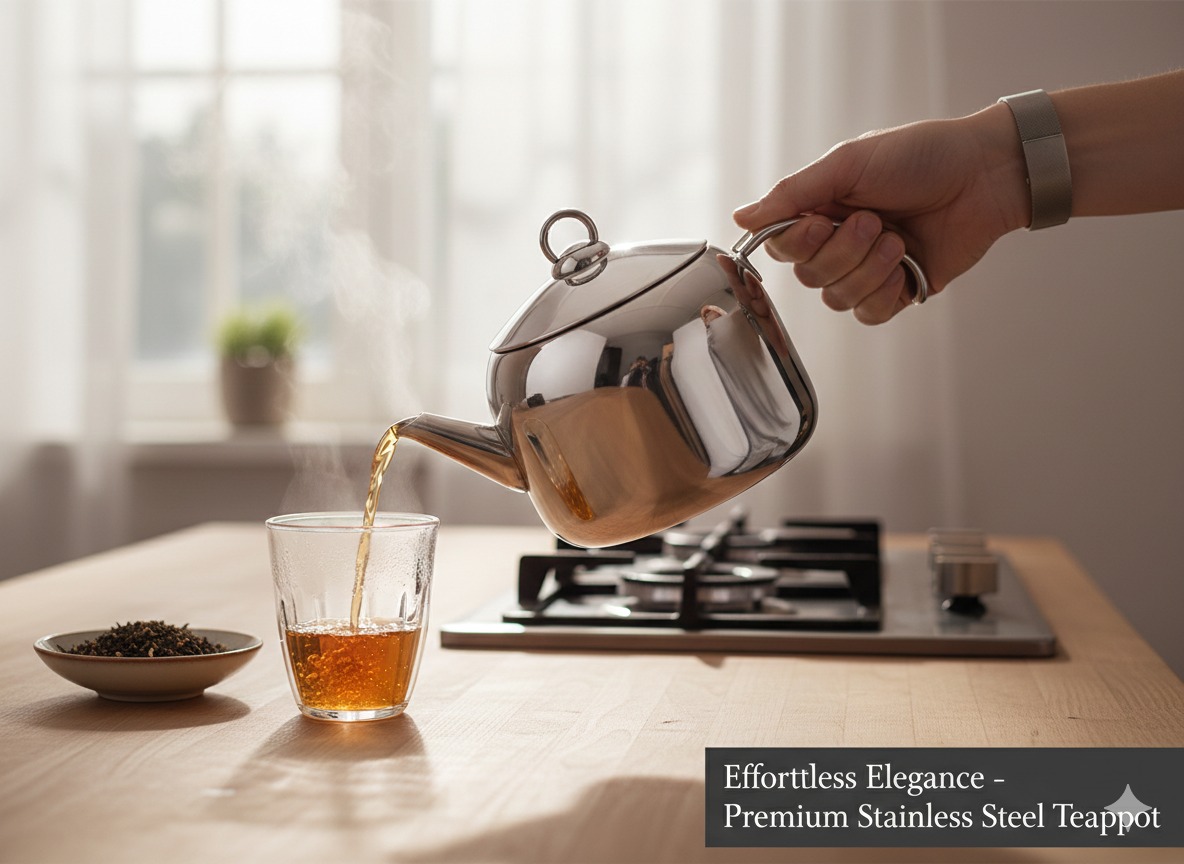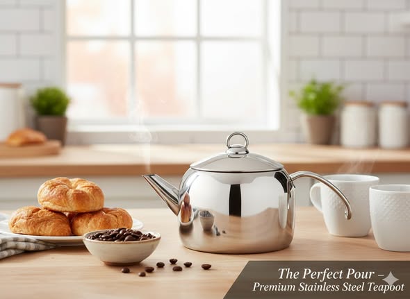 Royal Alfredo Stainless Steel Teapot, 2 Liter, Deluxe