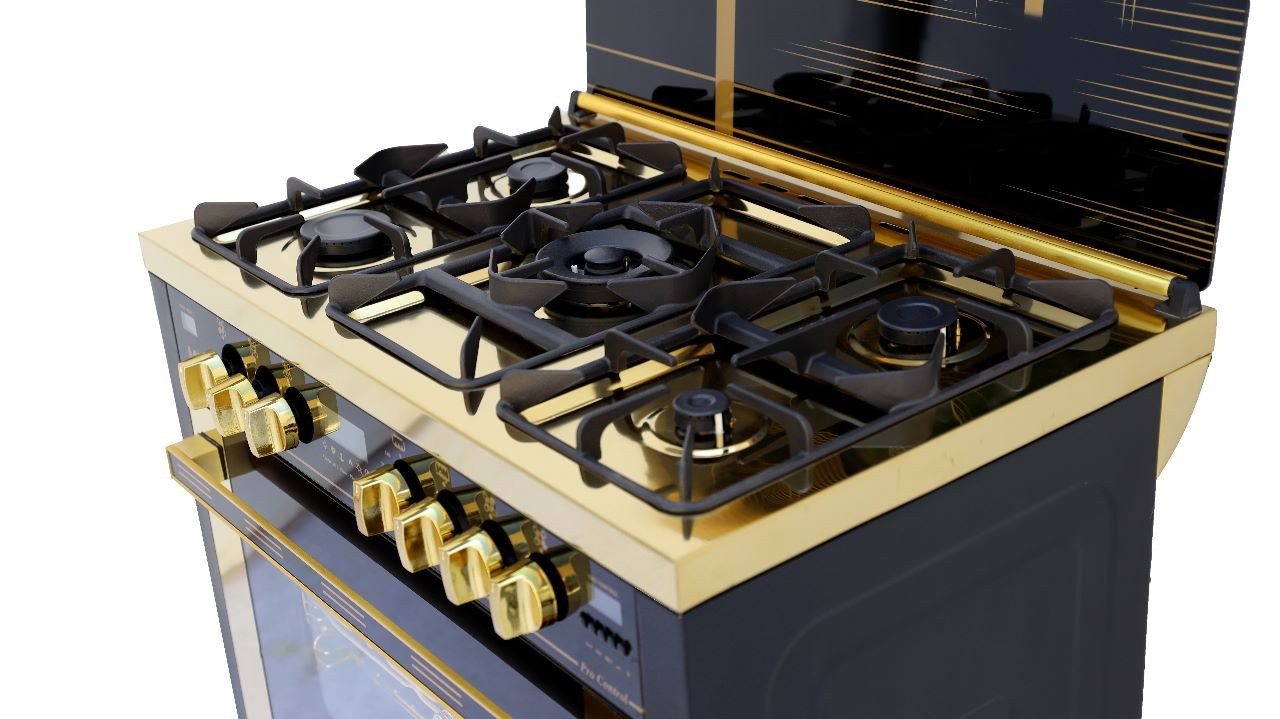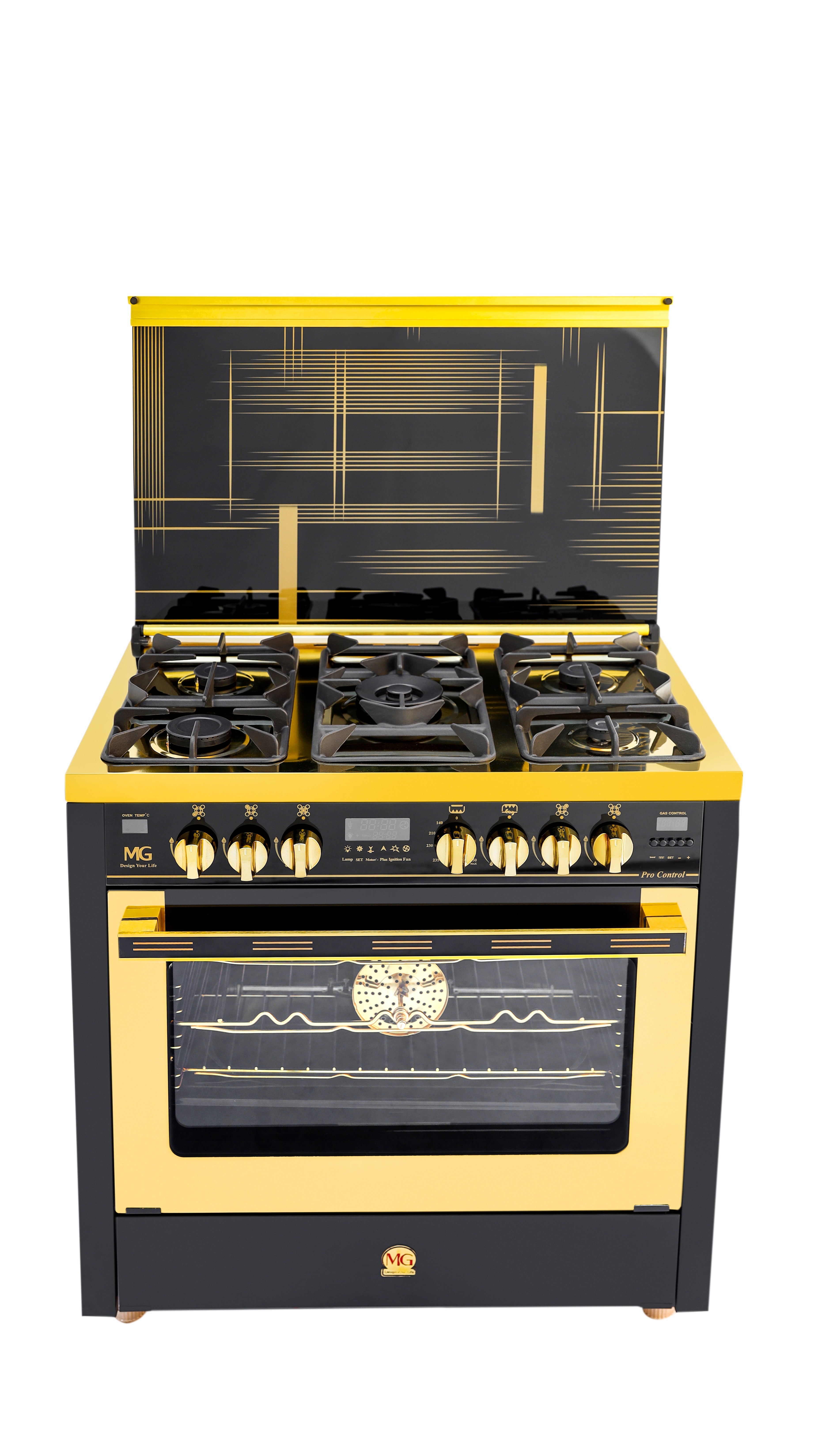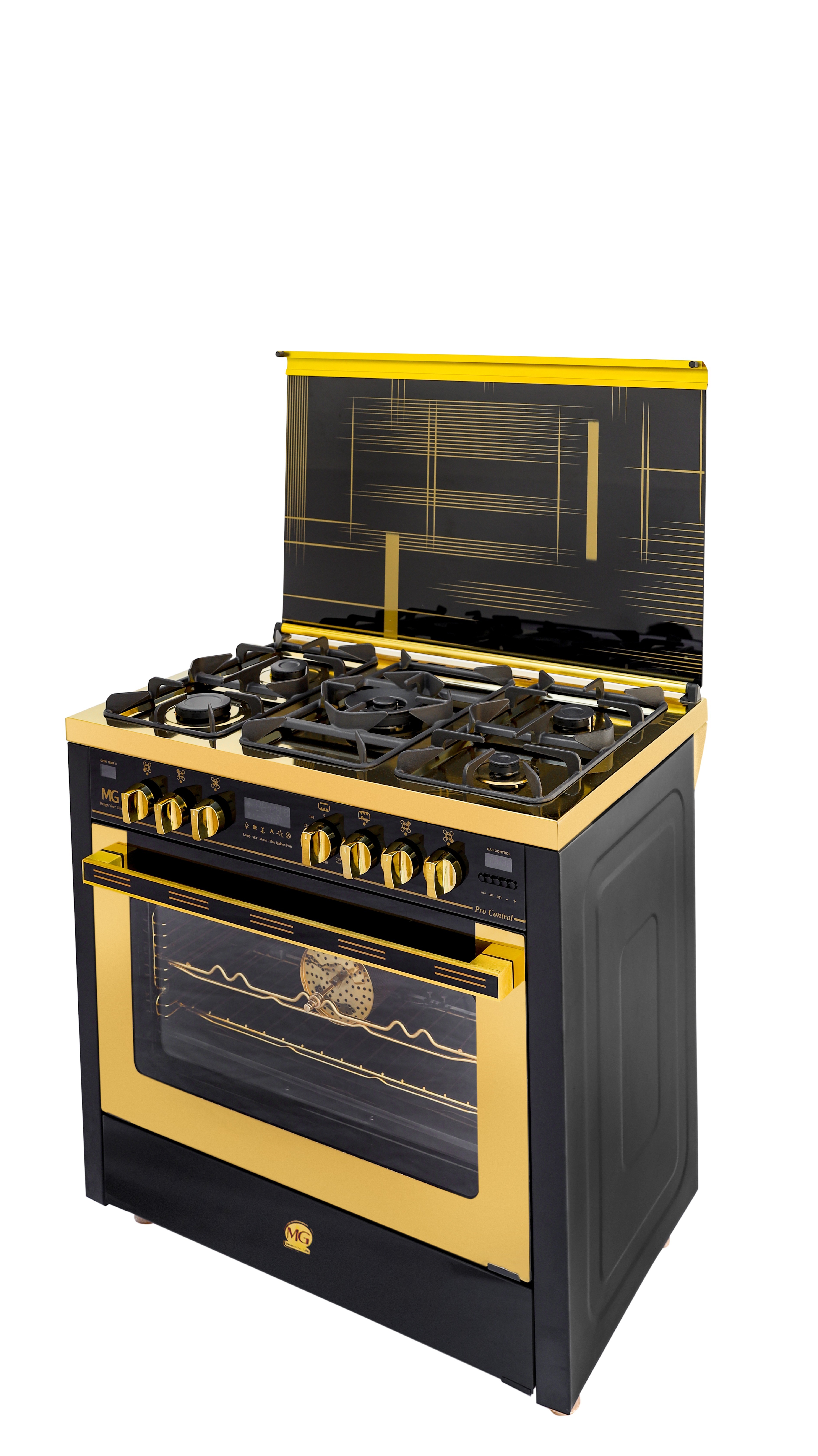 MG GOLD BLACK GOLDEN INOX COOKER 60*90 CM 5 BURNERS CAST IRON 2 FAN FULL SAFETY Digital - SA9008