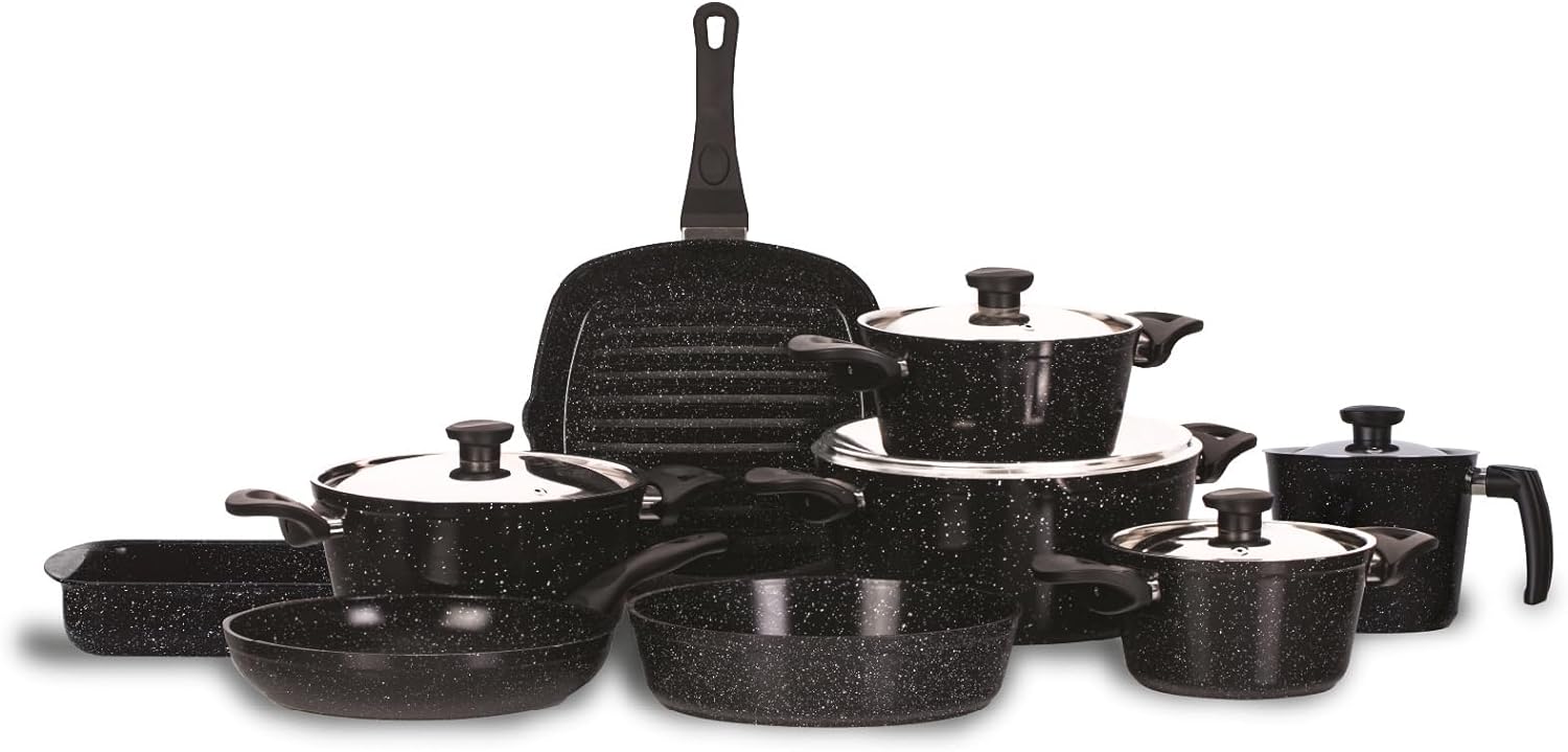 Granite pot set Top Chef 14 pieces (pots 18-20-24-28 + 26 cm frying pan + 30 cm tray + 16 cm lid + 28 cm grill)