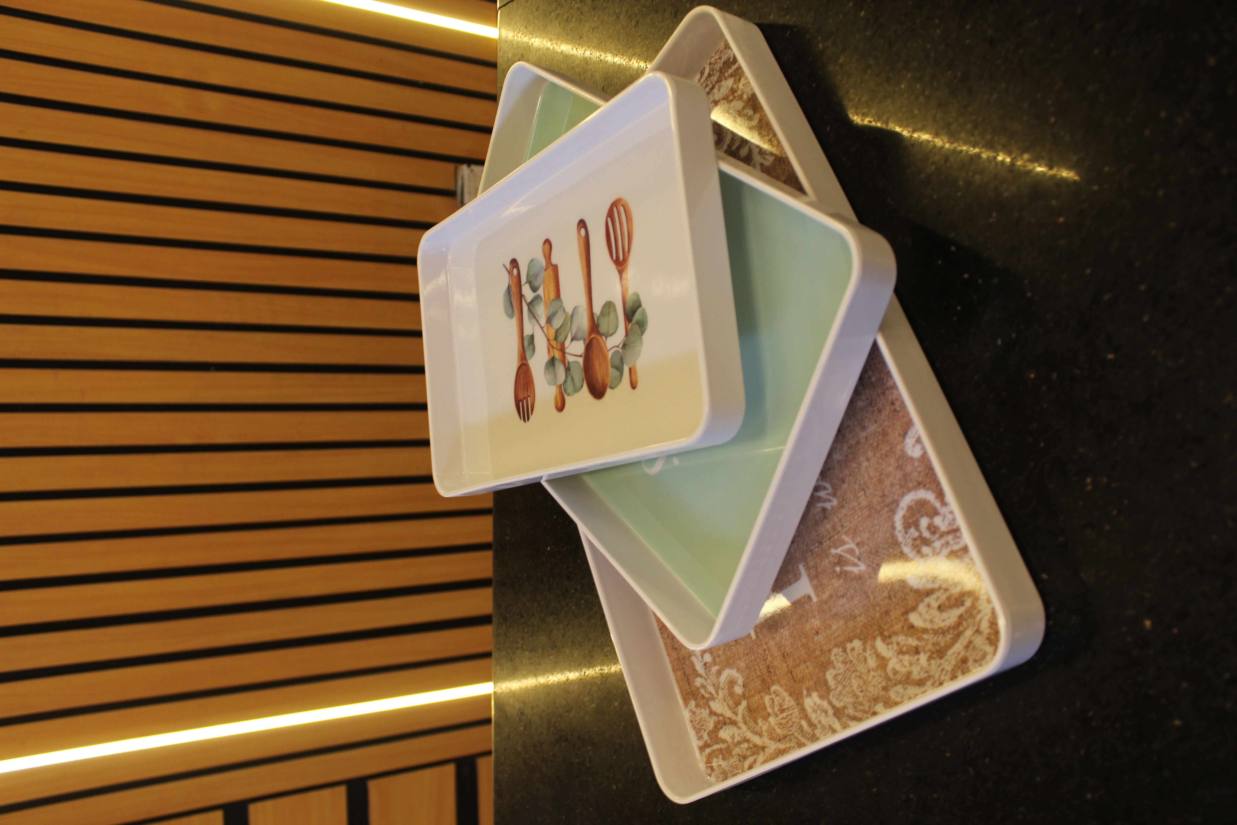 Set of 3 melamine trays in 7 shapes, colored box Abdo - 23 - 77