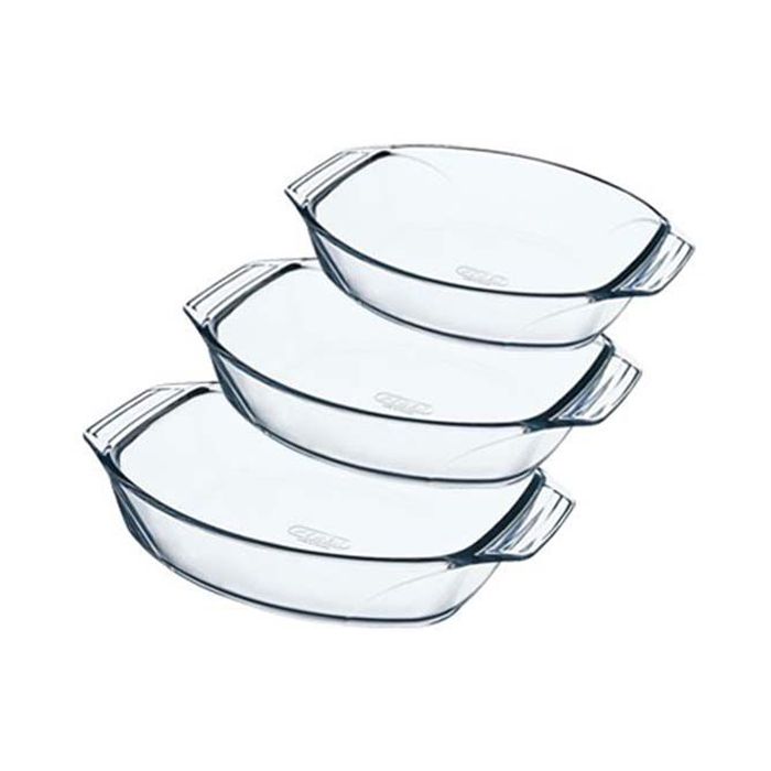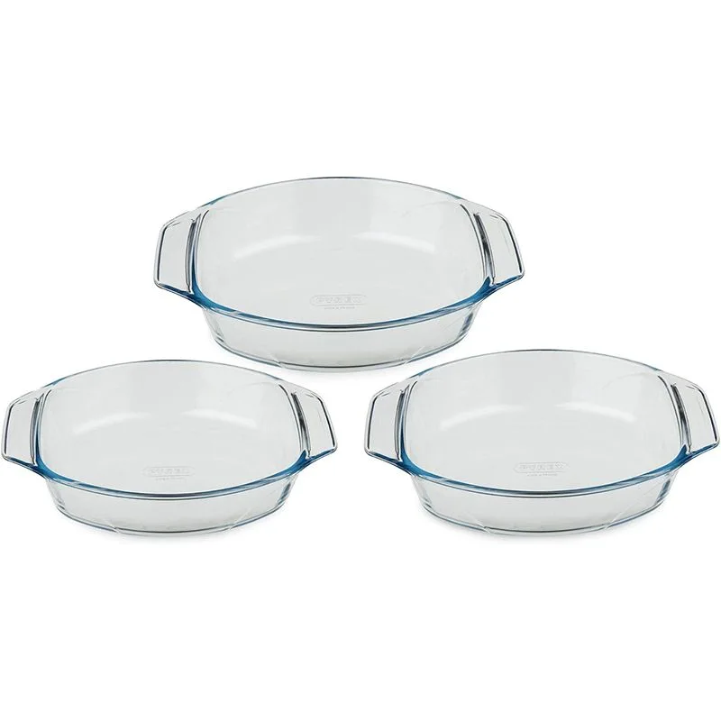 Intercoms Set, 3 Oval Pyrex with Optimum Handles in a Box