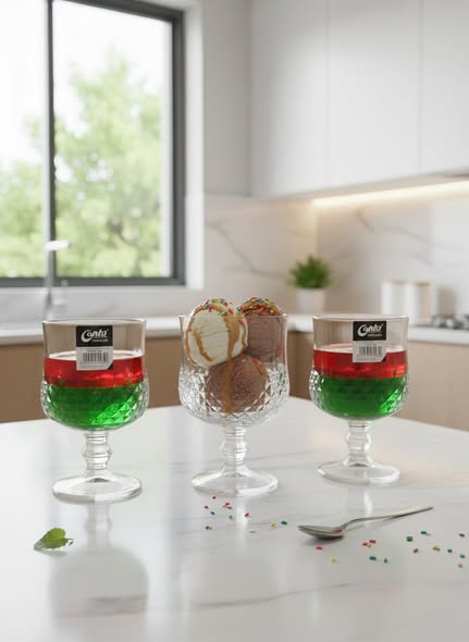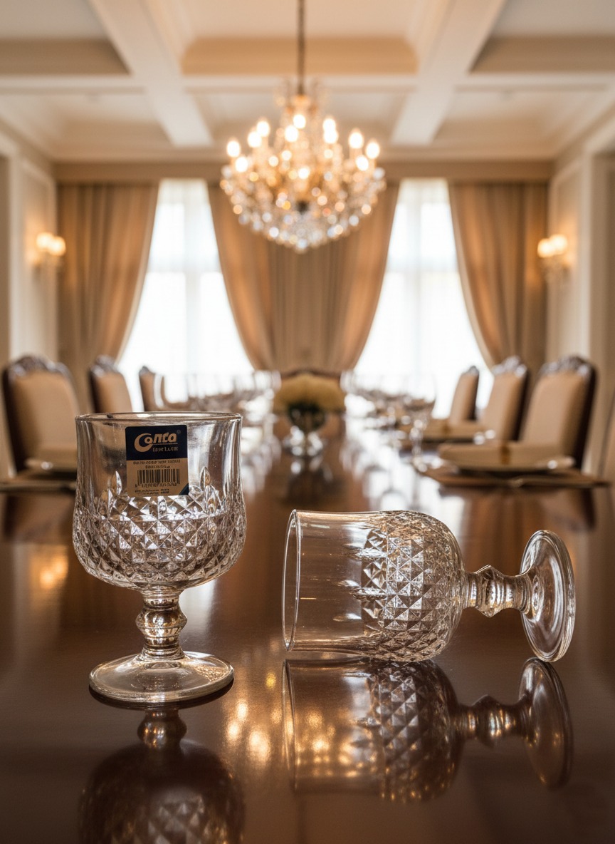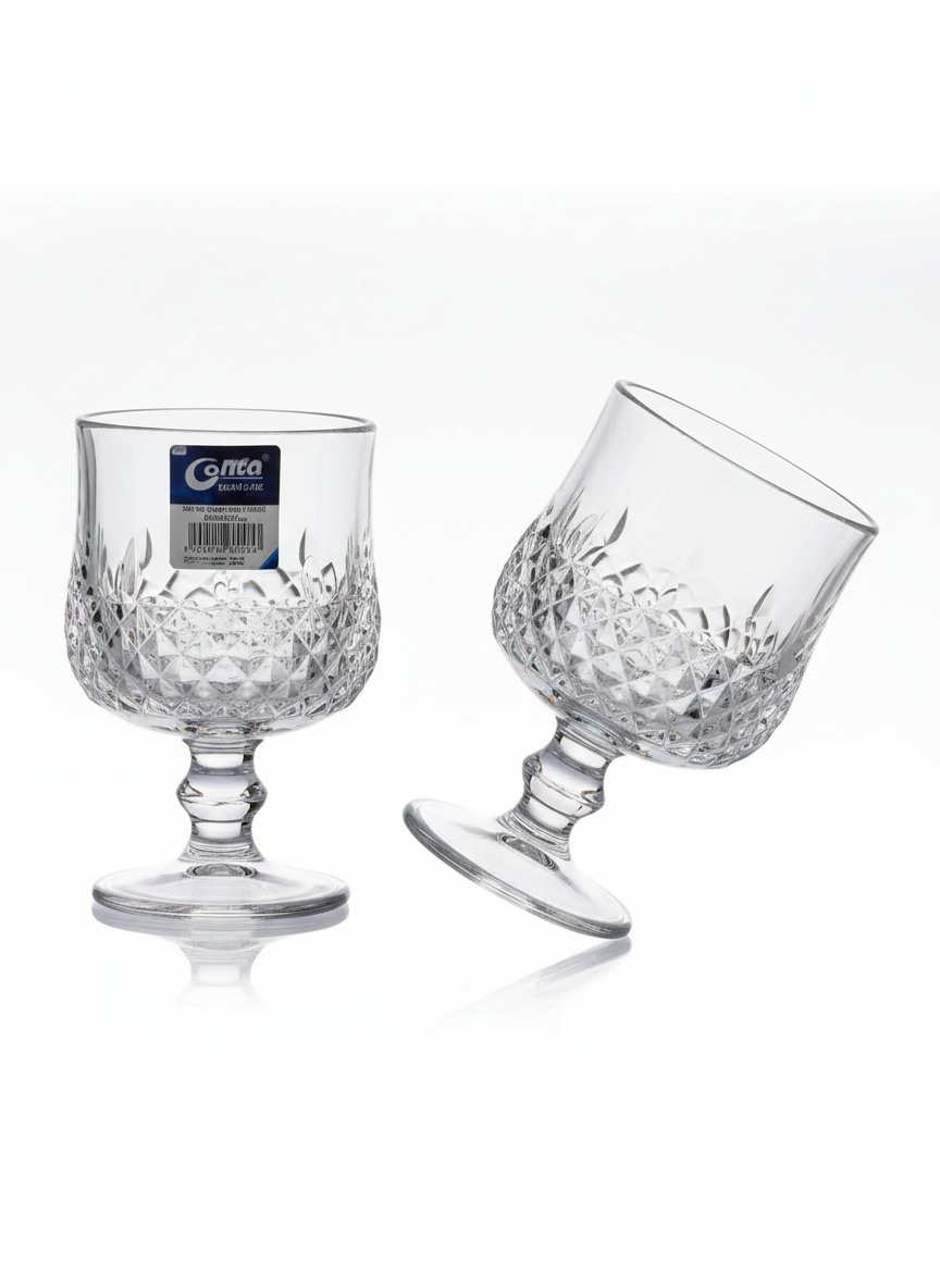 Living Home glass goblet, set of 6 pieces, transparent with an elegant diamond design and elevated base