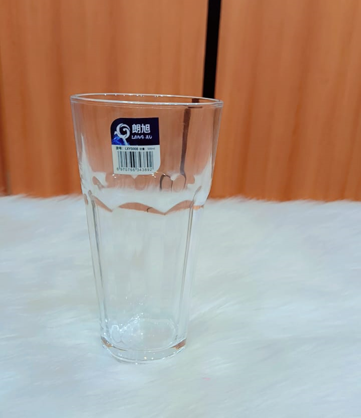 Living Home 6-piece transparent glass mug set with an elegant multi-faceted design and thick base