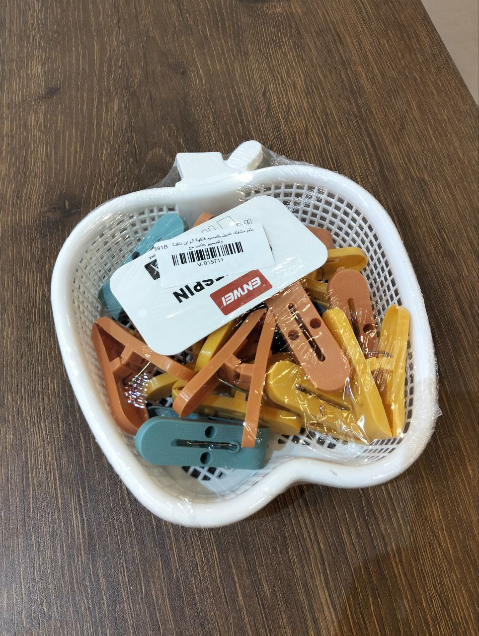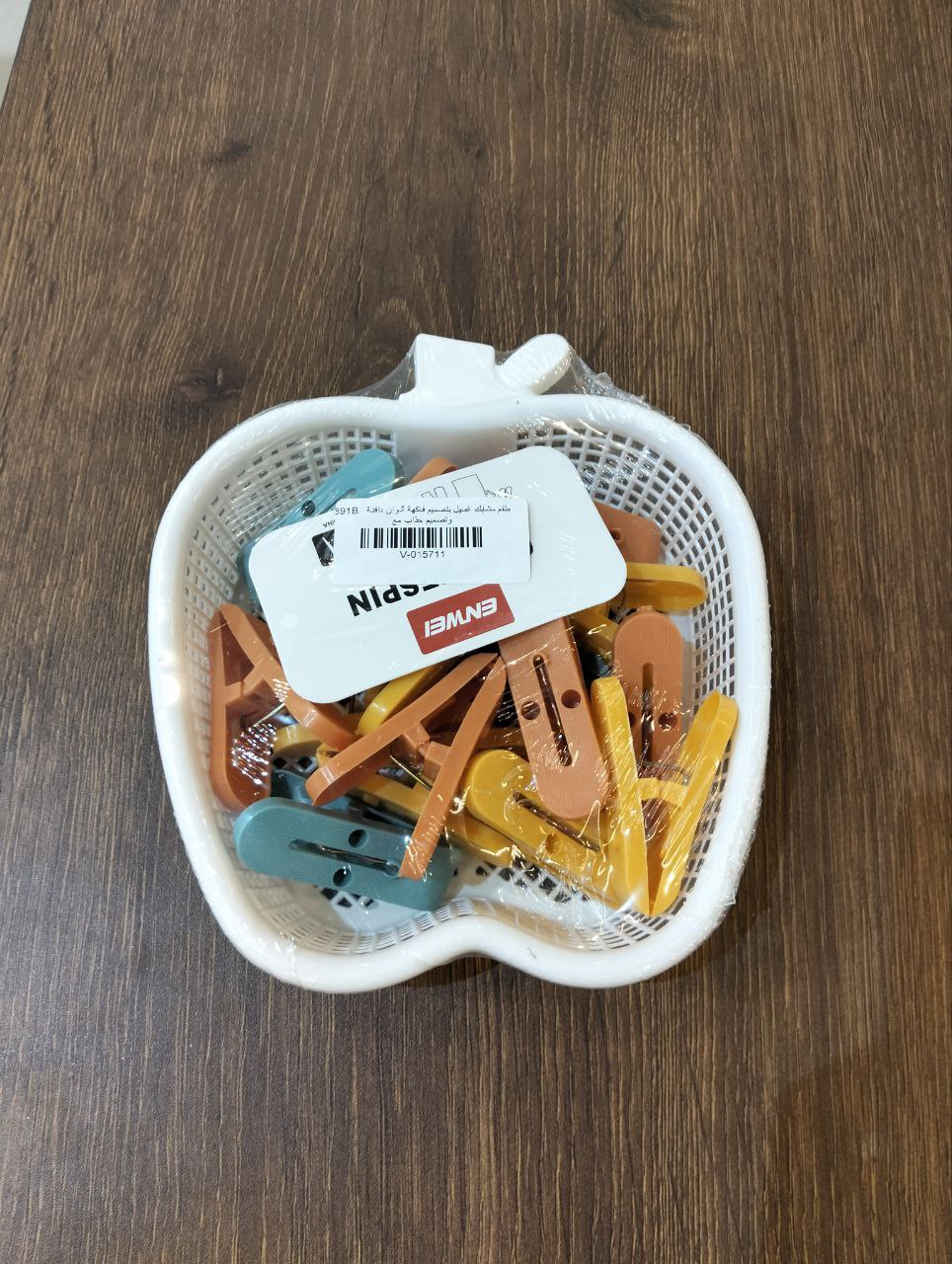 Set of warm- 16 pc colored fruit-themed laundry clips with attractive design and basket