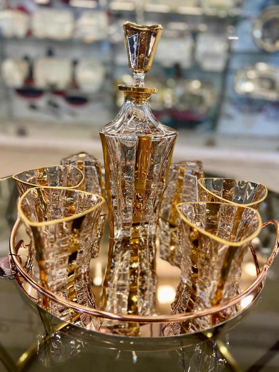 Sherbat Set Diamond Cup Gold – Hand-Embellished, 7 Pieces