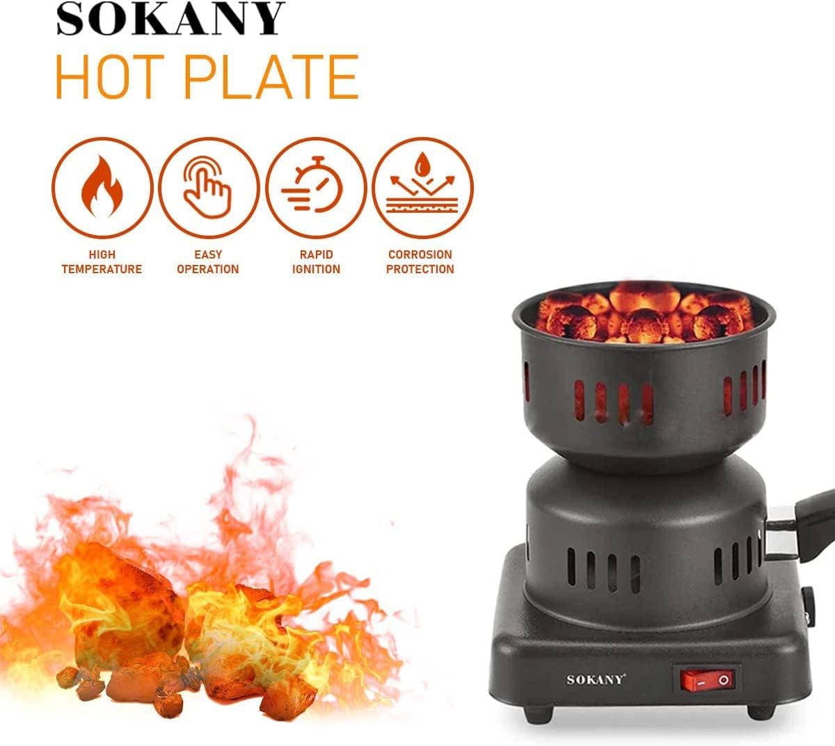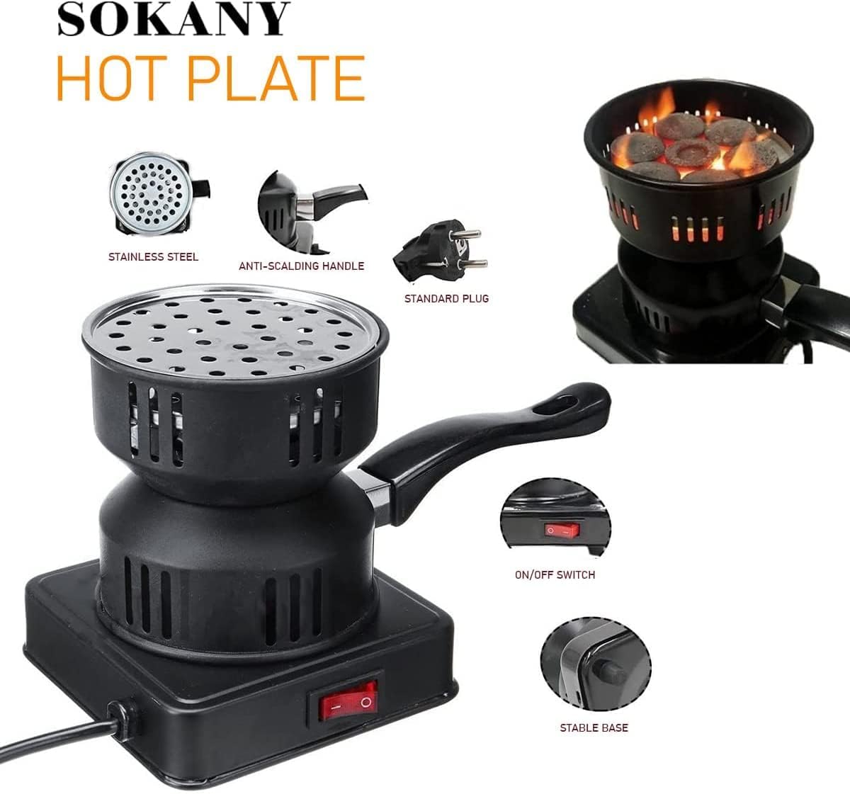 SUKANY 220V - 1000 Watts Charcoal Camping Electric Stove Coal Burner SK-5103, Black