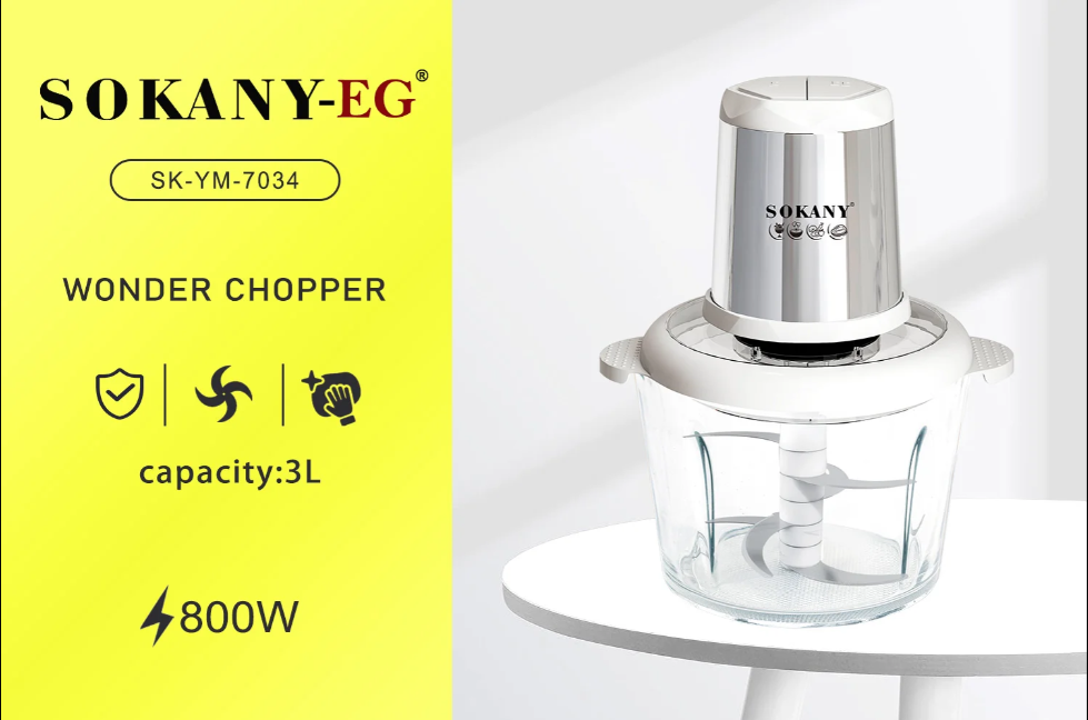 Sokany chopper, glass bowl, 3 liters, 800 watts SK-7034